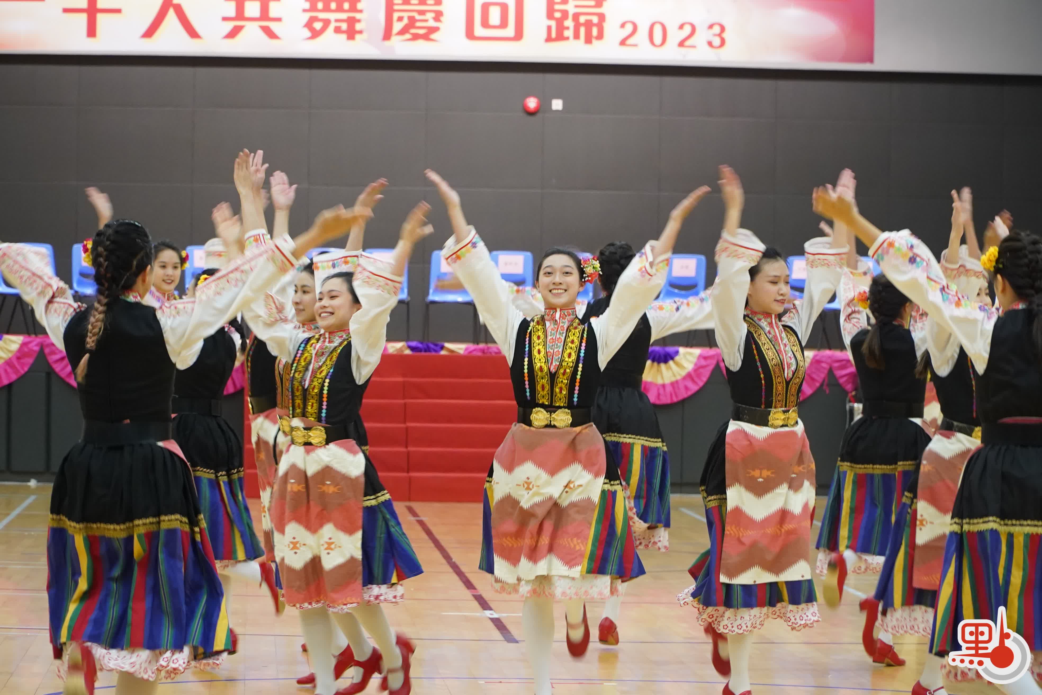 據悉,今次「千人共舞慶回歸」活動由40多個舞蹈團體共同演出,一千人歡聚一堂。表演「勇敢的中國人」這一支舞時,大家共同揮舞着手中的綢扇。而在隨後的表演中,來自各年齡段的舞蹈表演者為現場觀眾帶來意大利舞、匈牙利薩瑪地域舞、保加利亞舞、爵士舞、竹板舞、團扇舞、蘇格蘭舞等多個精彩的舞蹈表演,伴隨着音樂韻律舞出翩翩舞姿,裙擺飄揚,場面十分壯觀。