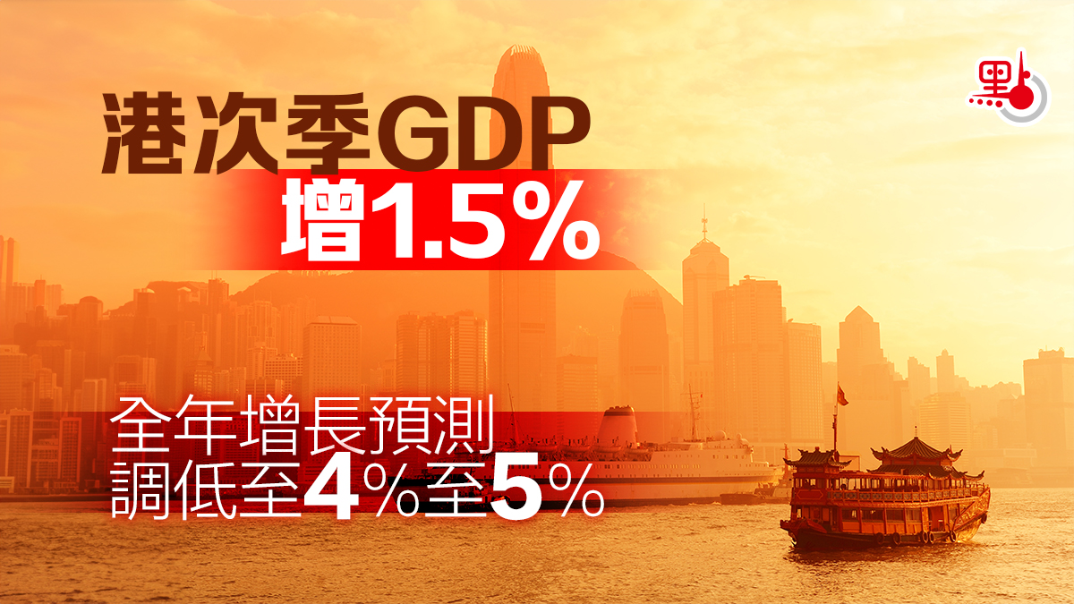 港次季GDP增1.5% 全年增長預測調低至4%至5%
