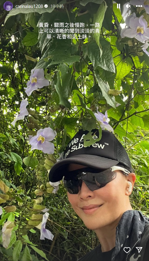 至於與梁朝偉結婚15年的劉嘉玲,昨晚於Instagram貼出自拍照,並寫道:「黃昏,驟雨之後慢跑,一路上可以清晰地聞到淡淡的青草、花香和泥土味。」相中的她笑容滿面,心情似乎完全沒有被影響。