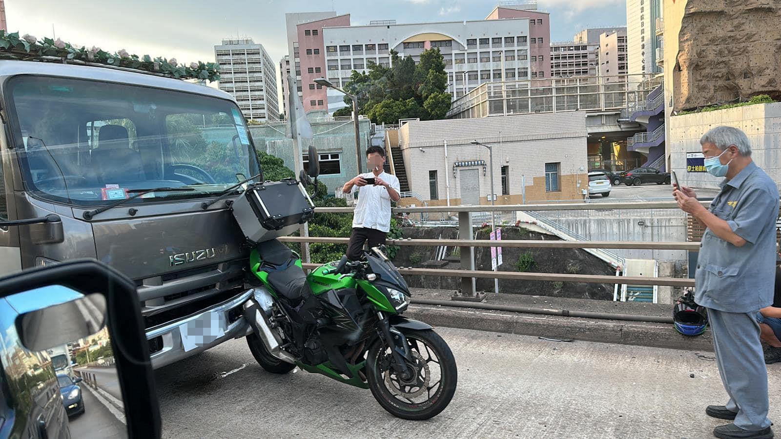 加士居道天橋三車相撞包括靈車 鐵騎士受傷送院