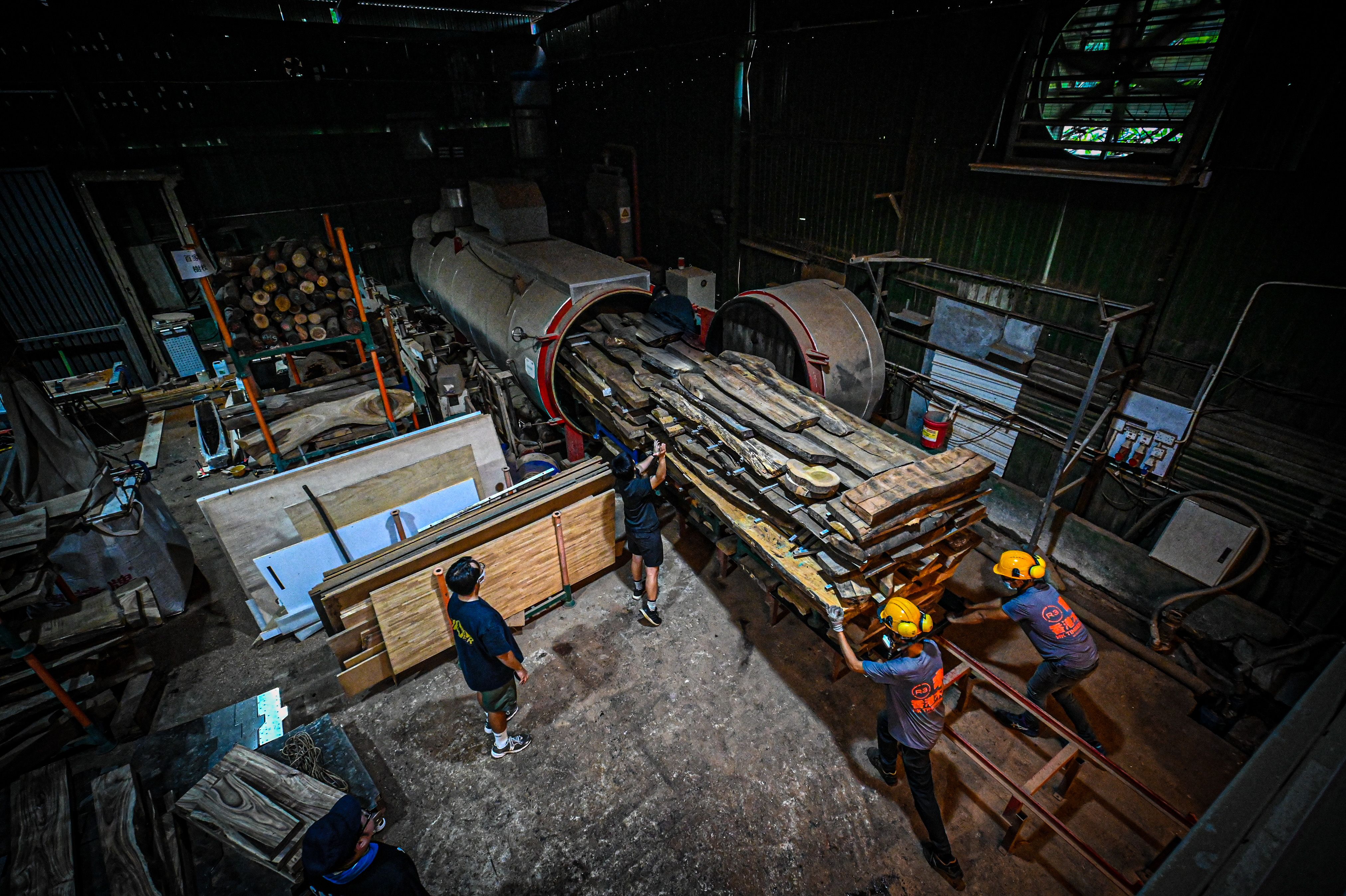 這種浪費激發了建築藝術家黃卓健的思考,學設計出身的他萌生出一個想法,香港木材資源豐富,為何不直接用本地資源建立屬於香港的林木工業呢?於是,他將「美感設計」與「環保再用」這兩個理念結合,帶領具有多年經驗的設計團隊將回收木材設計成商用建築材料、室內木傢具、室外藝術。2019年,他成立了「香港木庫」。如今,這個團隊擁有十多位年輕的木工工匠,一個佔地15000平方呎的工廠,以及專業設備,如木材切割機、乾燥機和起重機,用來回收、分類、切割和乾燥各種本地樹木,擁有能製成商用木材和傢具的完整工業鏈。