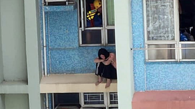 珍惜生命|慈正邨女子危坐窗台 消防開救生氣墊戒備