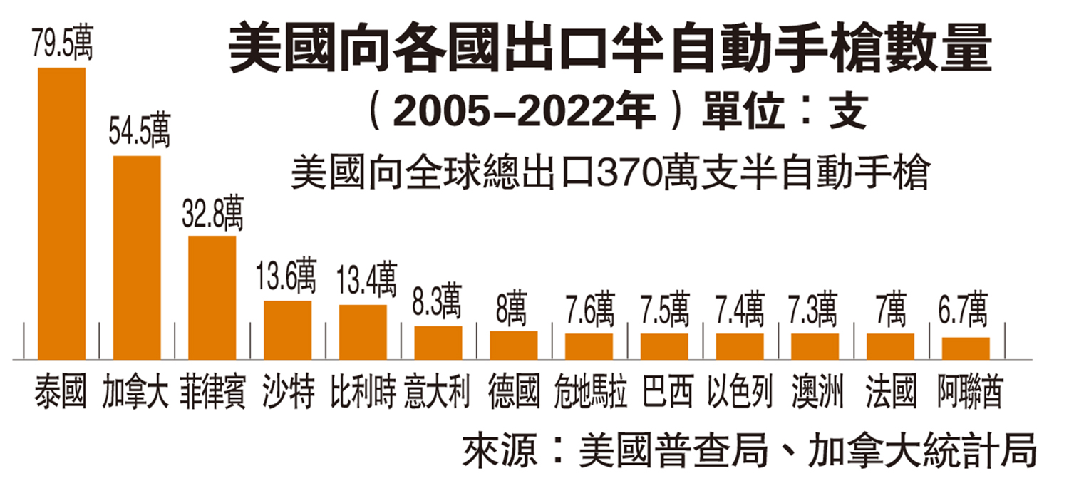在美國社會日益極化、民眾對槍支的需求量持續增長的情況下,美國最大的槍支出口商西格紹爾沒有放棄在海外尋找新的買家,繼續開拓銷路。從2005年到2022年,美國槍支海外銷量猛增,17年間累計超過372萬支。比如泰國,就是美國槍支出口的主要目的地之一,這372萬支槍當中,有79.5萬支賣給了泰國。