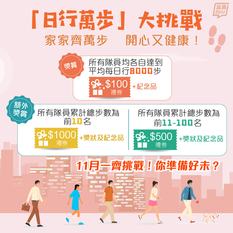「日行萬步」步行挑戰接受報名。(添馬台fb圖片)
