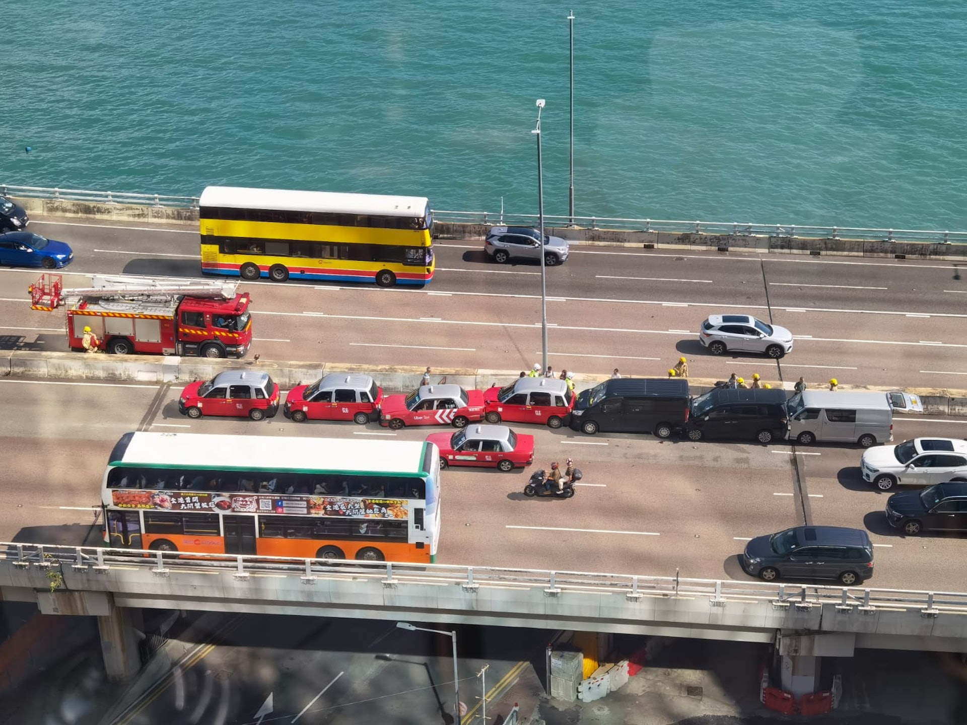 因交通意外,東區走廊往中環方向近東港中心的部分行車線仍然封閉,駕駛人士只可使用餘下行車線行車,現時上址交通擠塞。