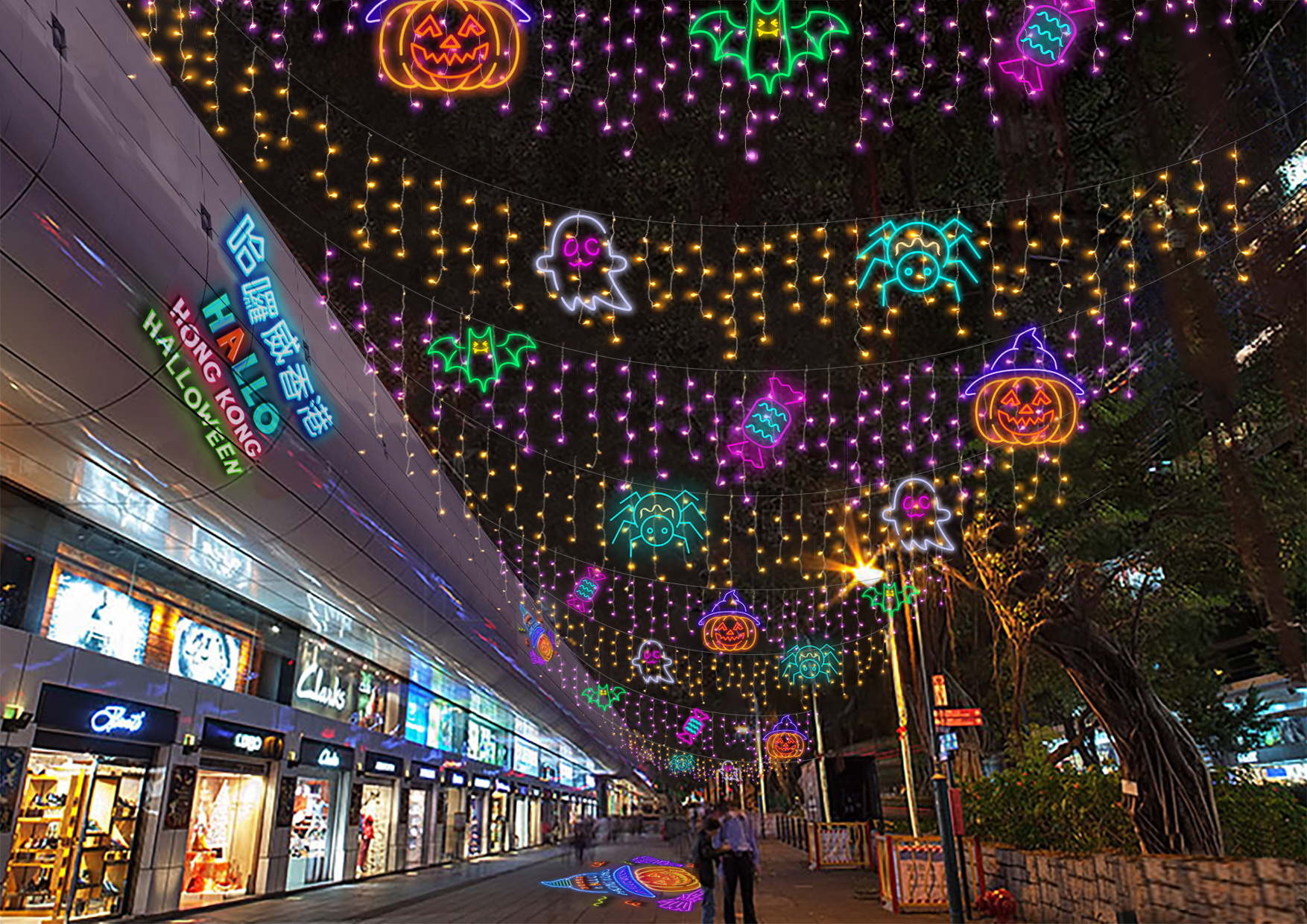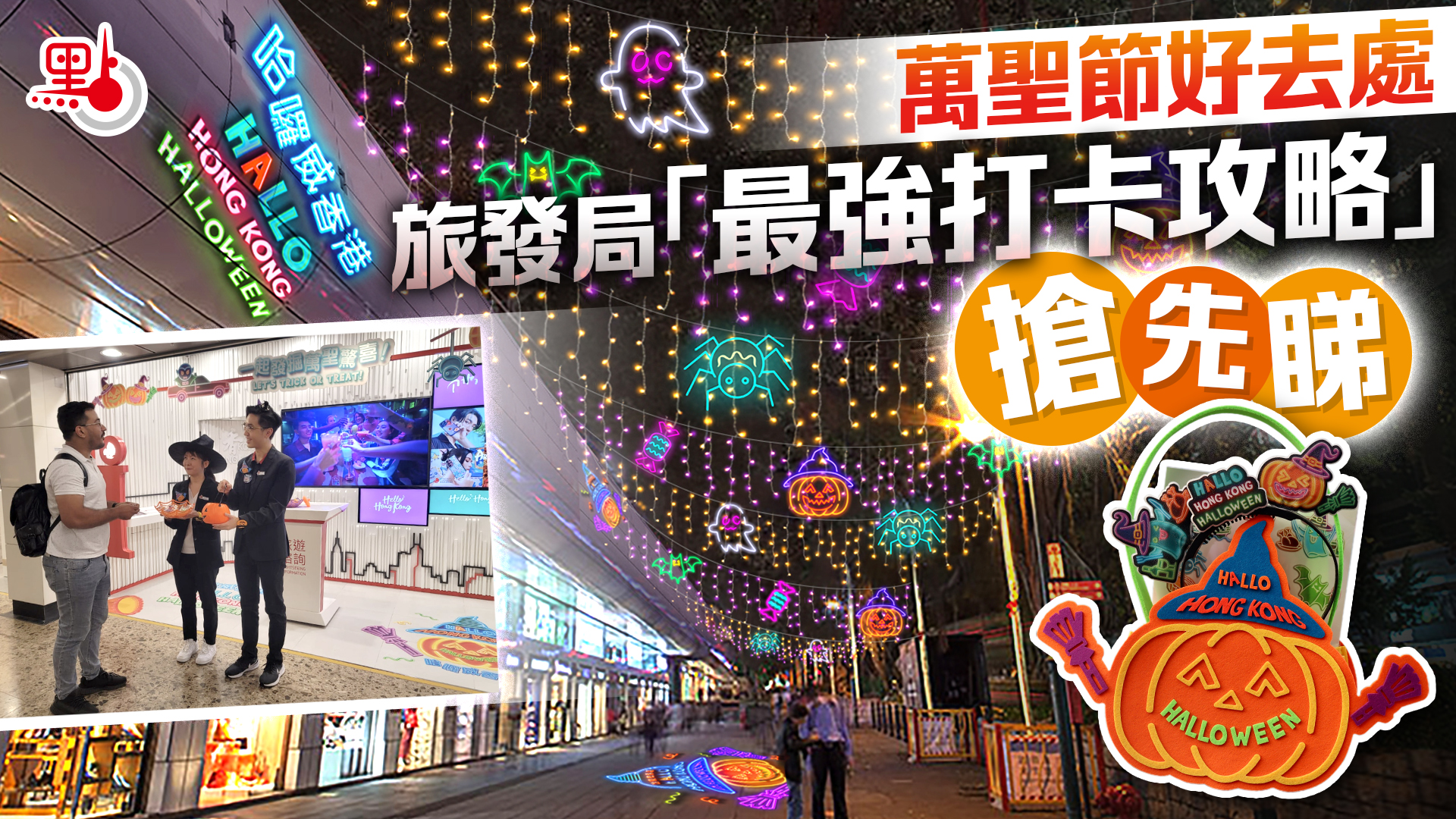 設計趣緻且色彩繽紛的南瓜、小精靈﹑蝙蝠、蜘蛛﹑糖果等造型的霓虹燈飾﹑主題貼紙﹑LED藝術裝置,即日起陸續填滿尖沙咀栢麗購物大道﹑星光大道﹑海港城﹑灣仔利東街﹑中環半山扶手電梯﹑及銅鑼灣祟光百貨外的巴士站,為城市加添萬聖節節慶及派對氛圍,吸引大家眼球,一起捕捉有趣的萬聖節小精靈,盡情打卡。