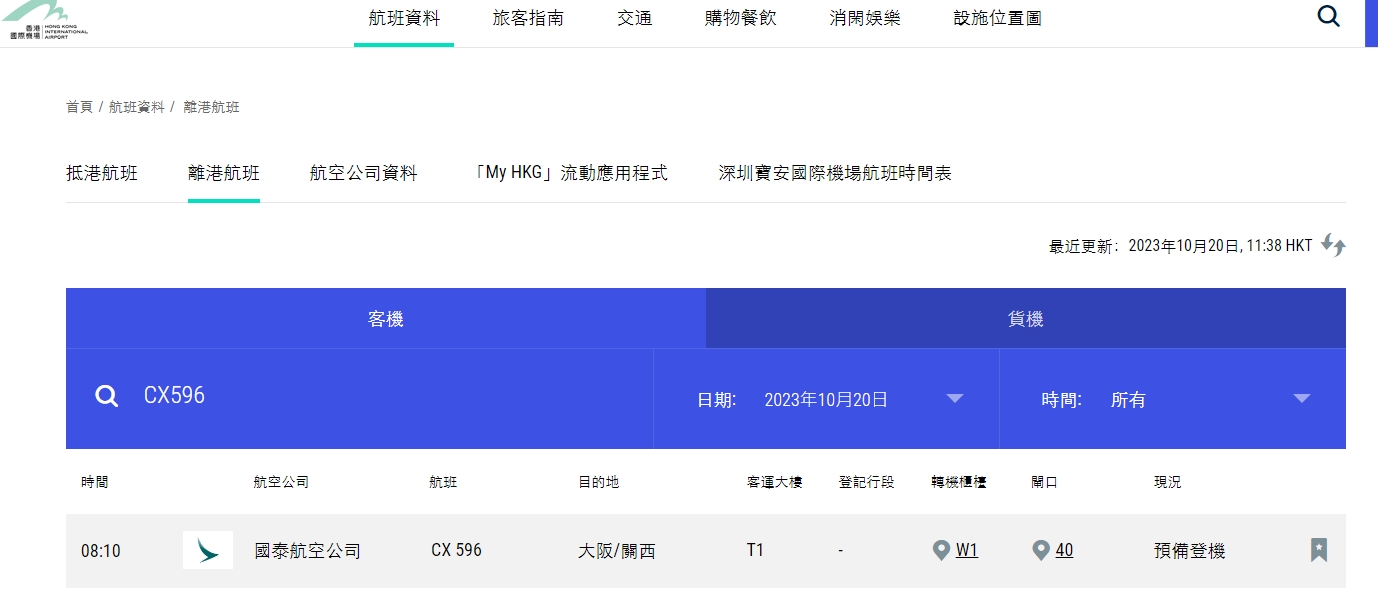 由機管局網頁可見,CX596原定早上8時10分起飛,目前狀態顯示預備登機。