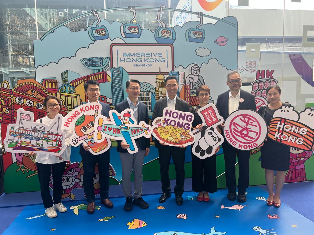 【點新聞報道】文化體育及旅遊局局長楊潤雄今日(22日)繼續泰國訪問行程,他早上到曼谷參觀「香港非物質文化遺產嘉年華」展覽,展覽由康樂及文化事務署(康文署)轄下非物質文化遺產辦事處舉辦,透過展品、相片、短片及互動遊戲介紹香港的非遺項目。隨後,楊潤雄到訪曼谷市立藝術文化中心,了解當地文化藝術發展,以及欣賞由不同風格的藝術家創作的藝術作品。他亦到訪政府新聞處在曼谷舉辦的「香港─沉浸式之旅」巡迴展覽。