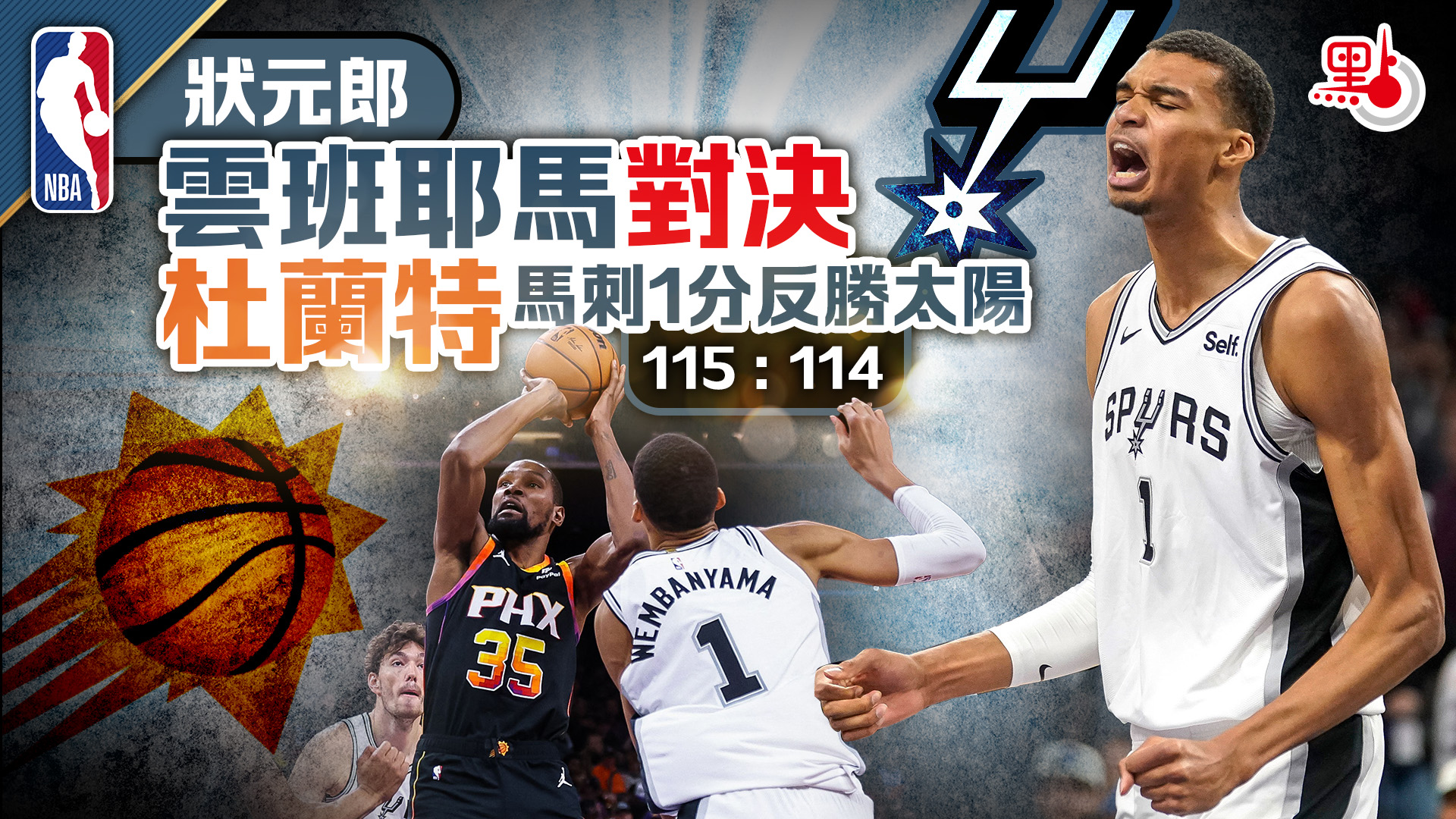 NBA|狀元郎雲班耶馬對決杜蘭特 馬刺1分反勝太陽