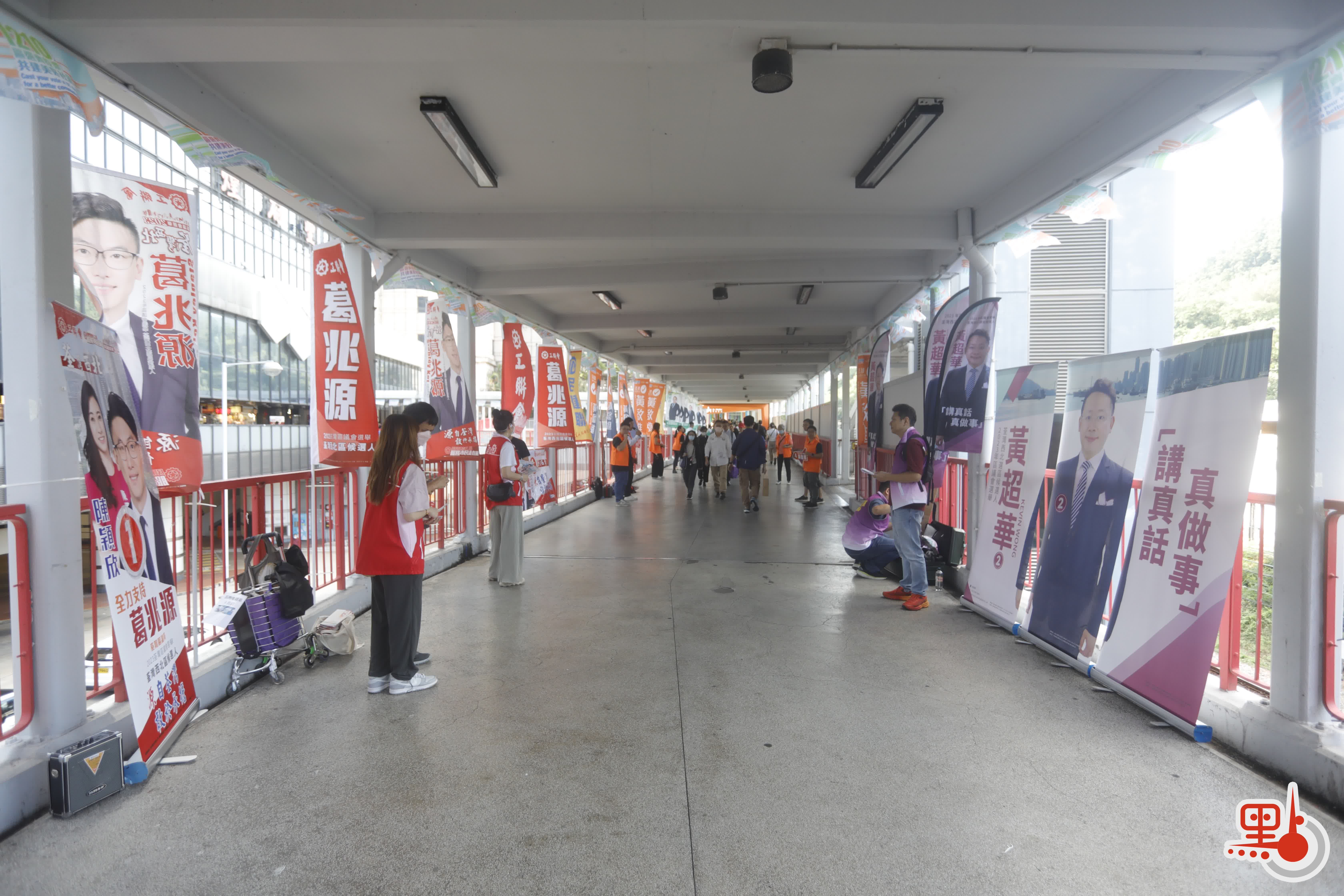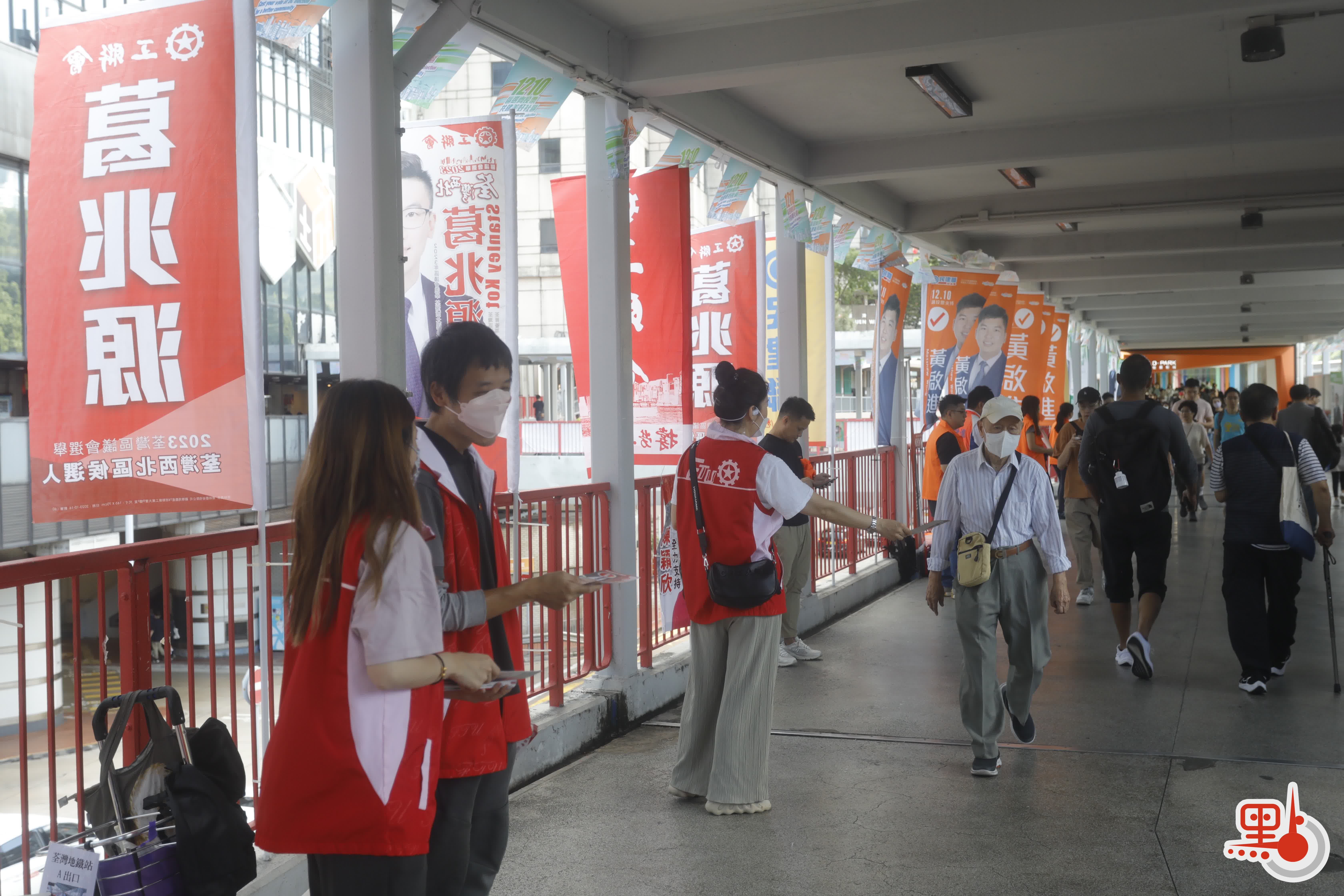 【點新聞報道】2023年區議會選舉將於12月10日展開投票,各區選情漸趨激烈。點新聞記者今午(12日)抵達荃灣港鐵站時,4名候選人的助選團隊已經掛滿旗幟,有人甚至將宣傳旗放在背包上,吸引市民拿取政綱單張。