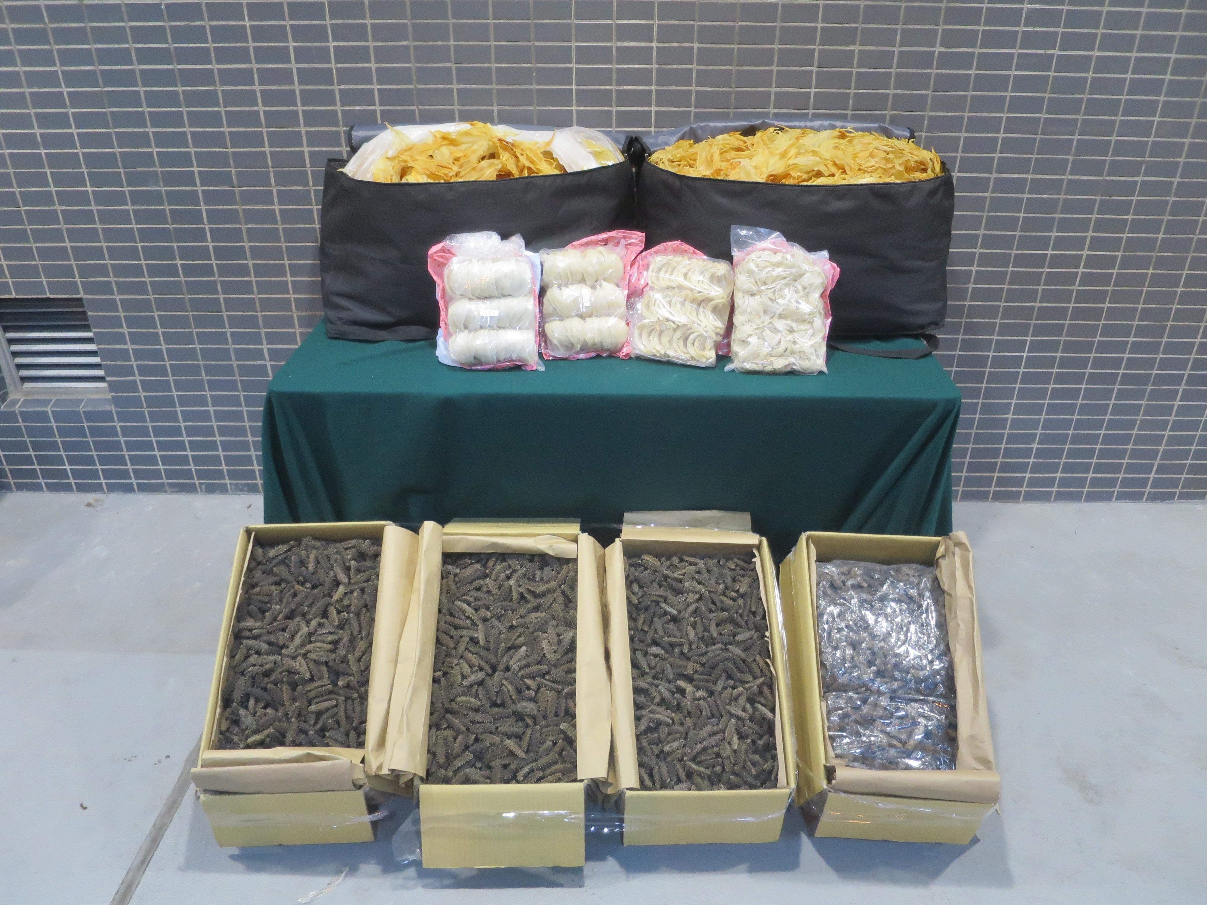 【點新聞報道】香港海關昨日(12日)在深圳灣管制站進行反走私行動,偵破一宗涉嫌利用跨境私家車走私的案件,檢獲一批懷疑走私參茸海味,包括約57公斤乾海參、28公斤乾花膠及2.2公斤燕窩,估計市值共約113萬元。