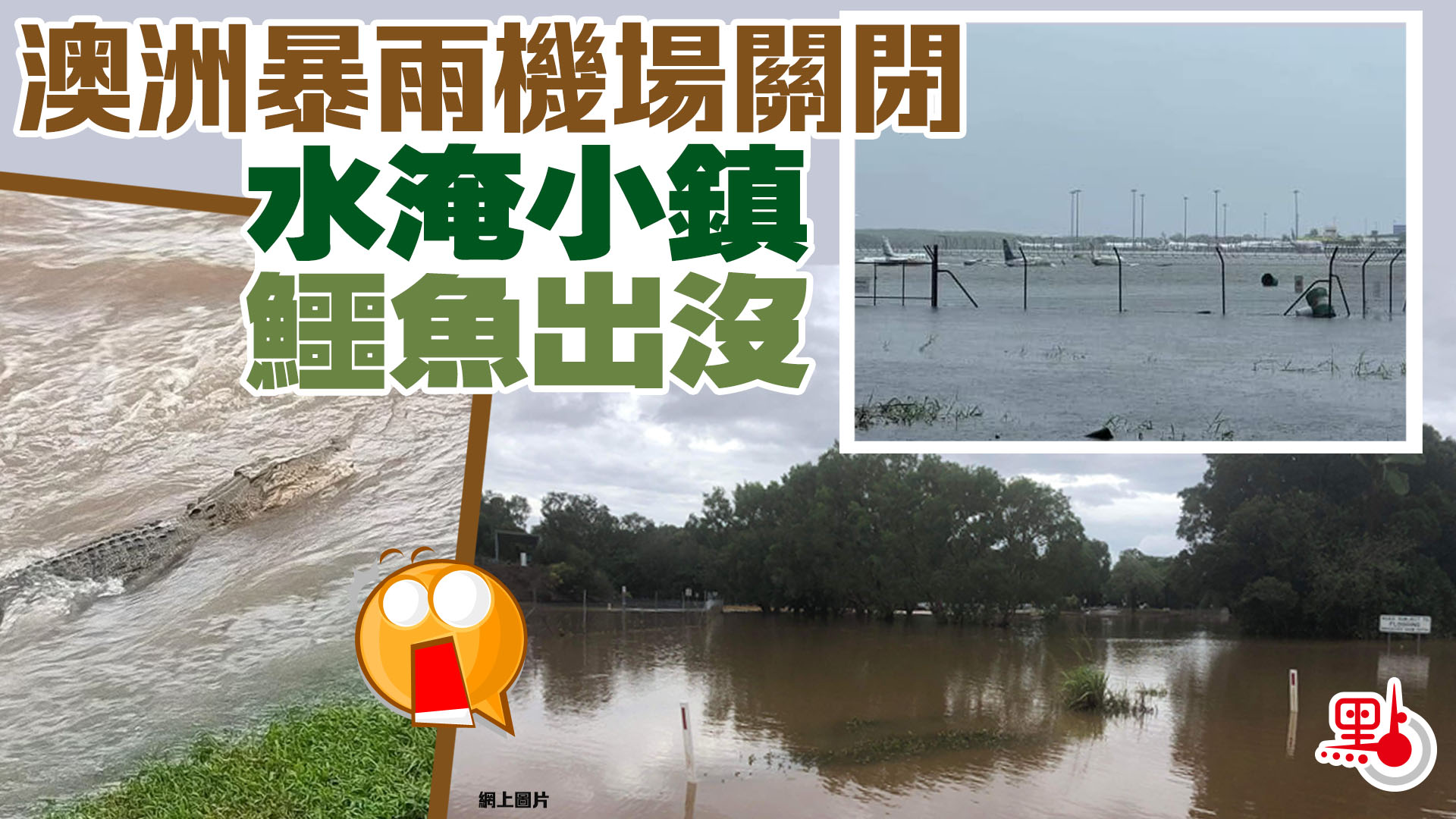 澳洲暴雨機場關閉 水淹小鎮鱷魚出沒