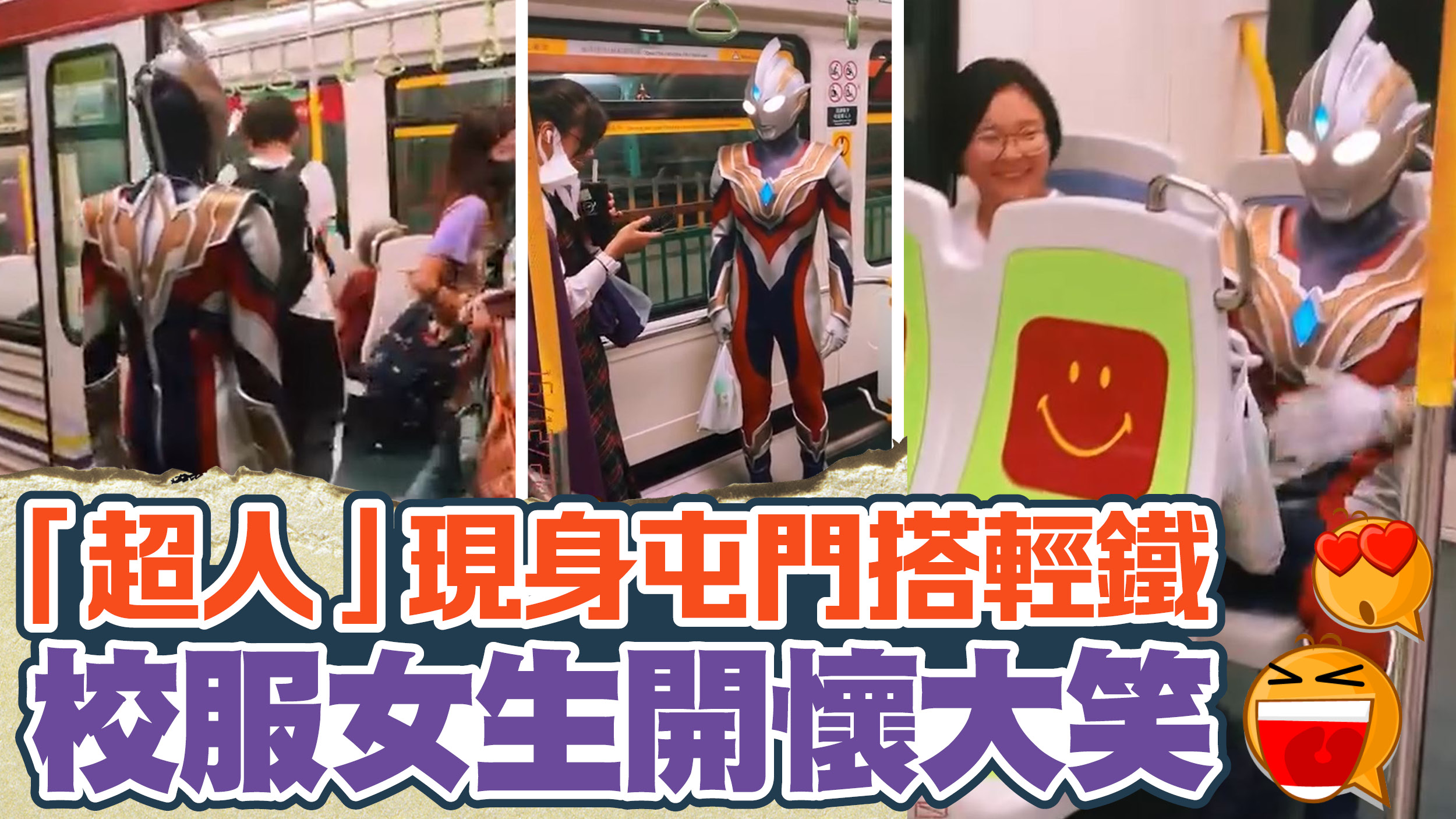 「超人」現身屯門搭輕鐵 校服女生開懷大笑