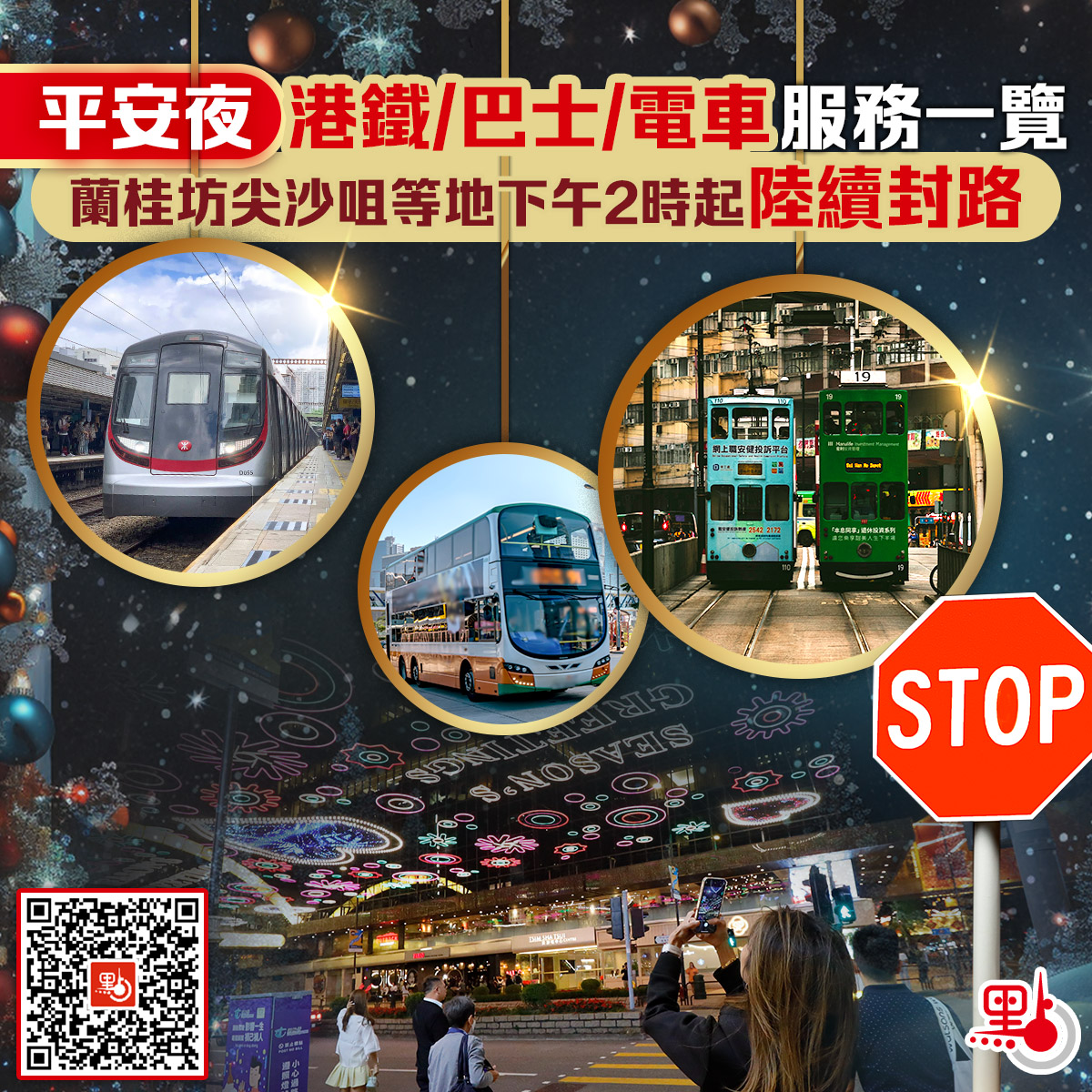 平安夜港鐵/巴士/電車服務一覽 蘭桂坊尖沙咀等地下午2時起陸續封路