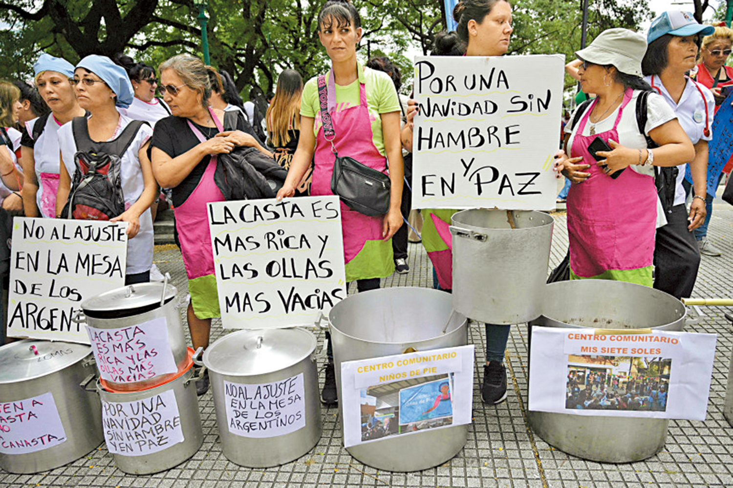 20日,米萊宣布更多改革措施,包括國企私有化、修改勞動法以限制罷工等。同日,數千人走上布宜諾斯艾利斯街頭,敲打着空鍋抗議米萊的經濟政策,並要求新政府為窮人提供更多支持。一名示威者手中的標語牌上寫着:「我們要過一個不餓肚子的聖誕節。」