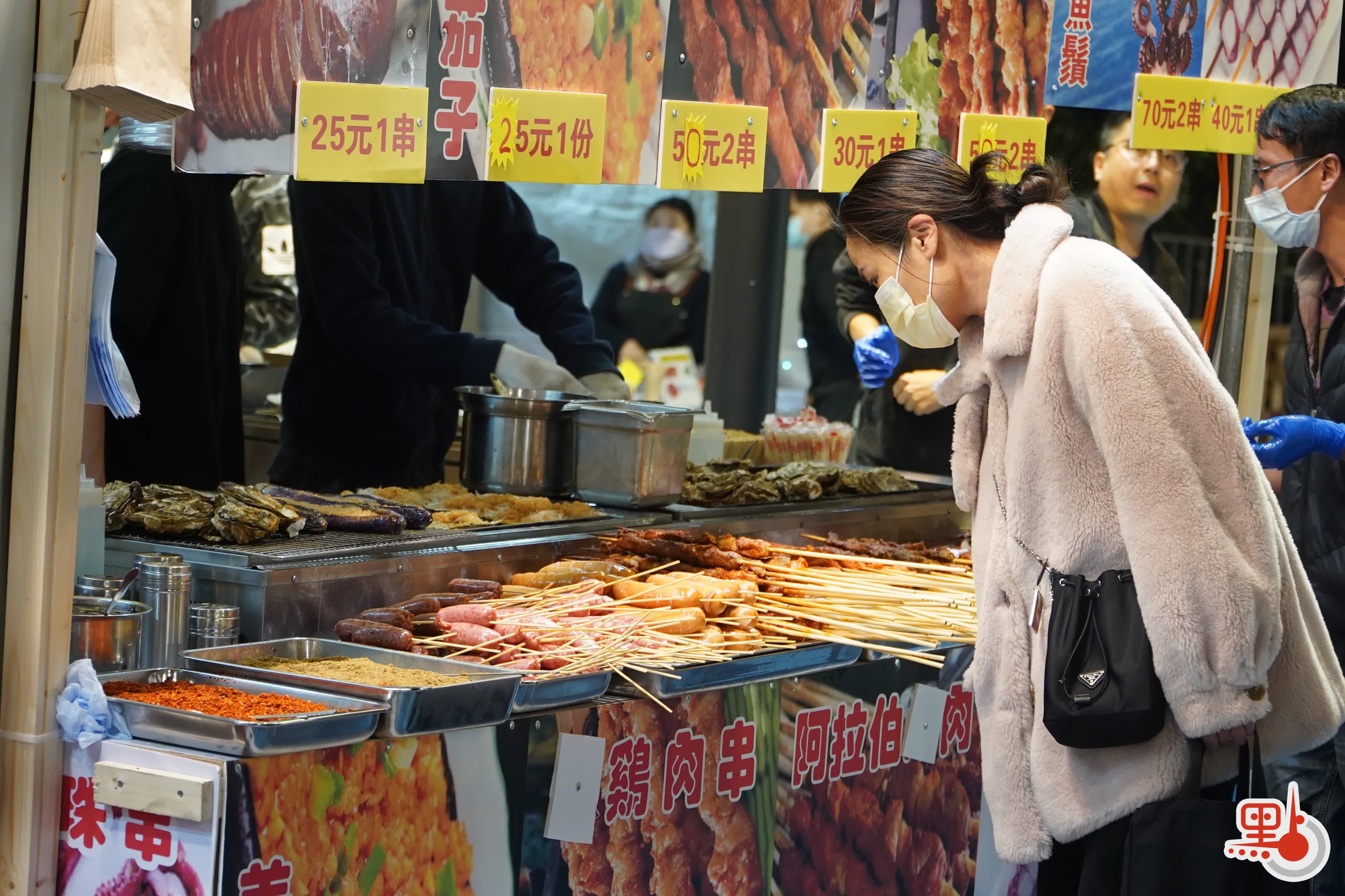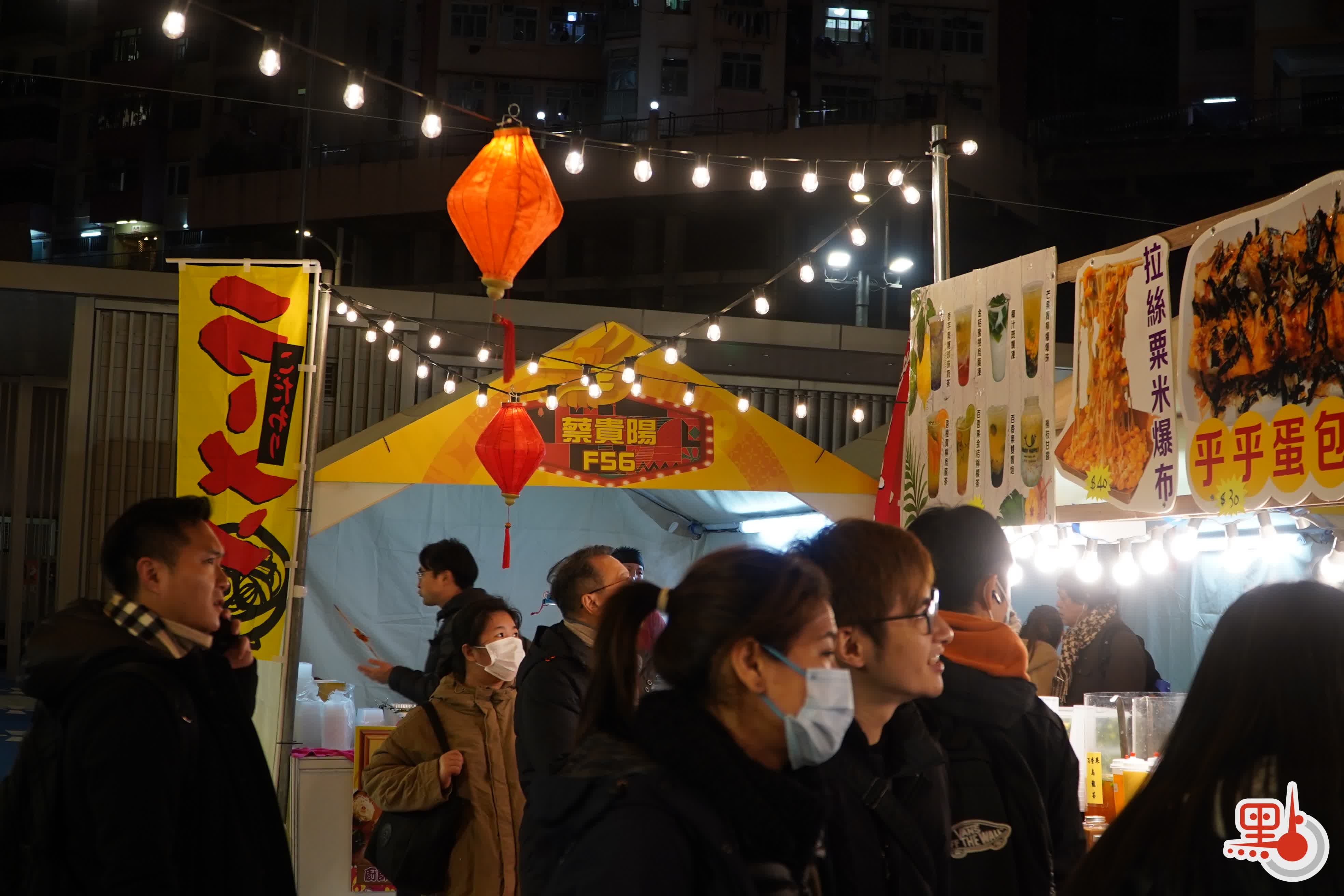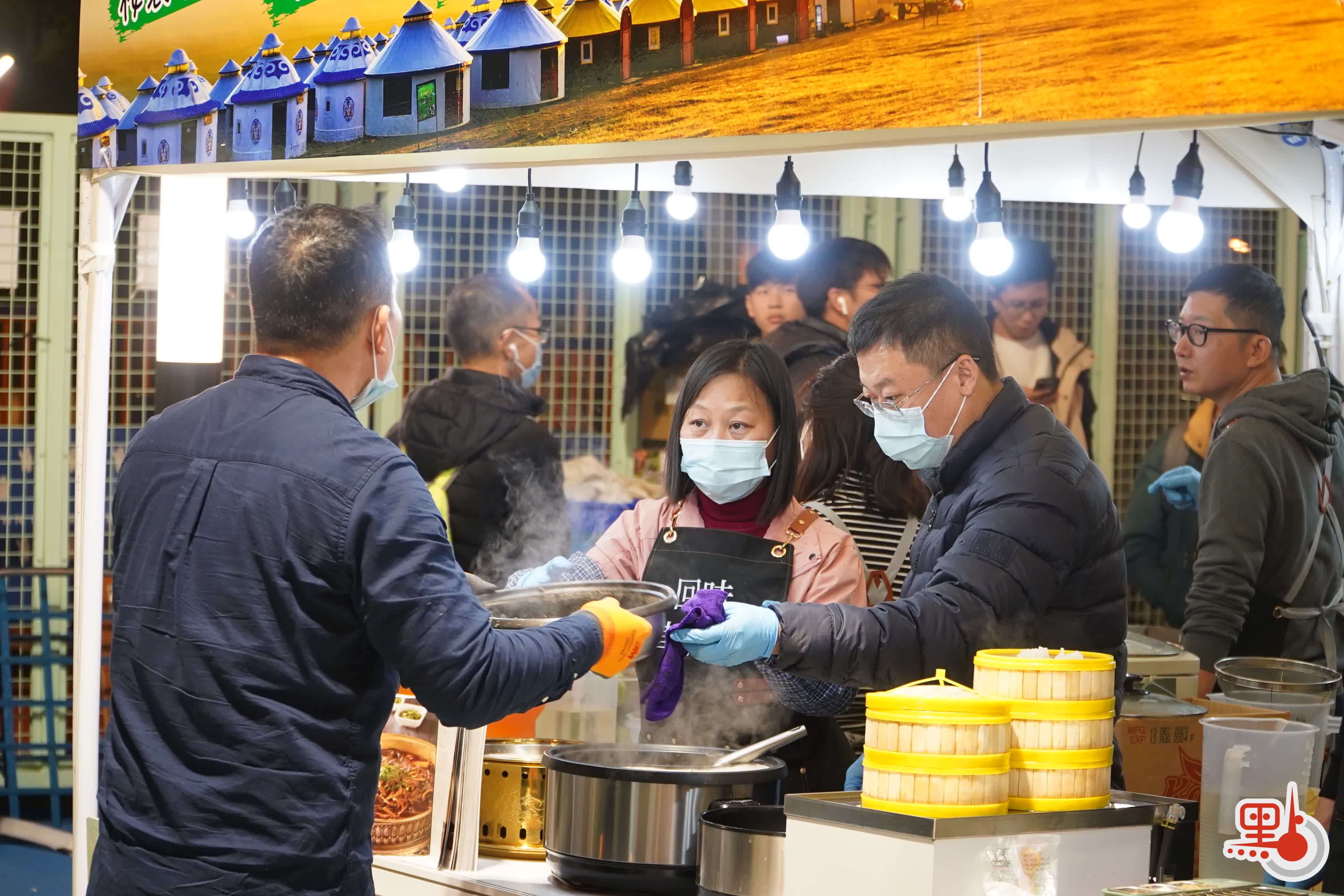 開放首日,現場攤位仍有「吉」,但現場人流非常暢旺,尤其是在小食區,有學生、情侶、母女結伴來到這裏「打卡」,在寒冷的夜晚伴隨着月光吃上一口熱辣小食,是忙碌整日後的甜蜜時間。