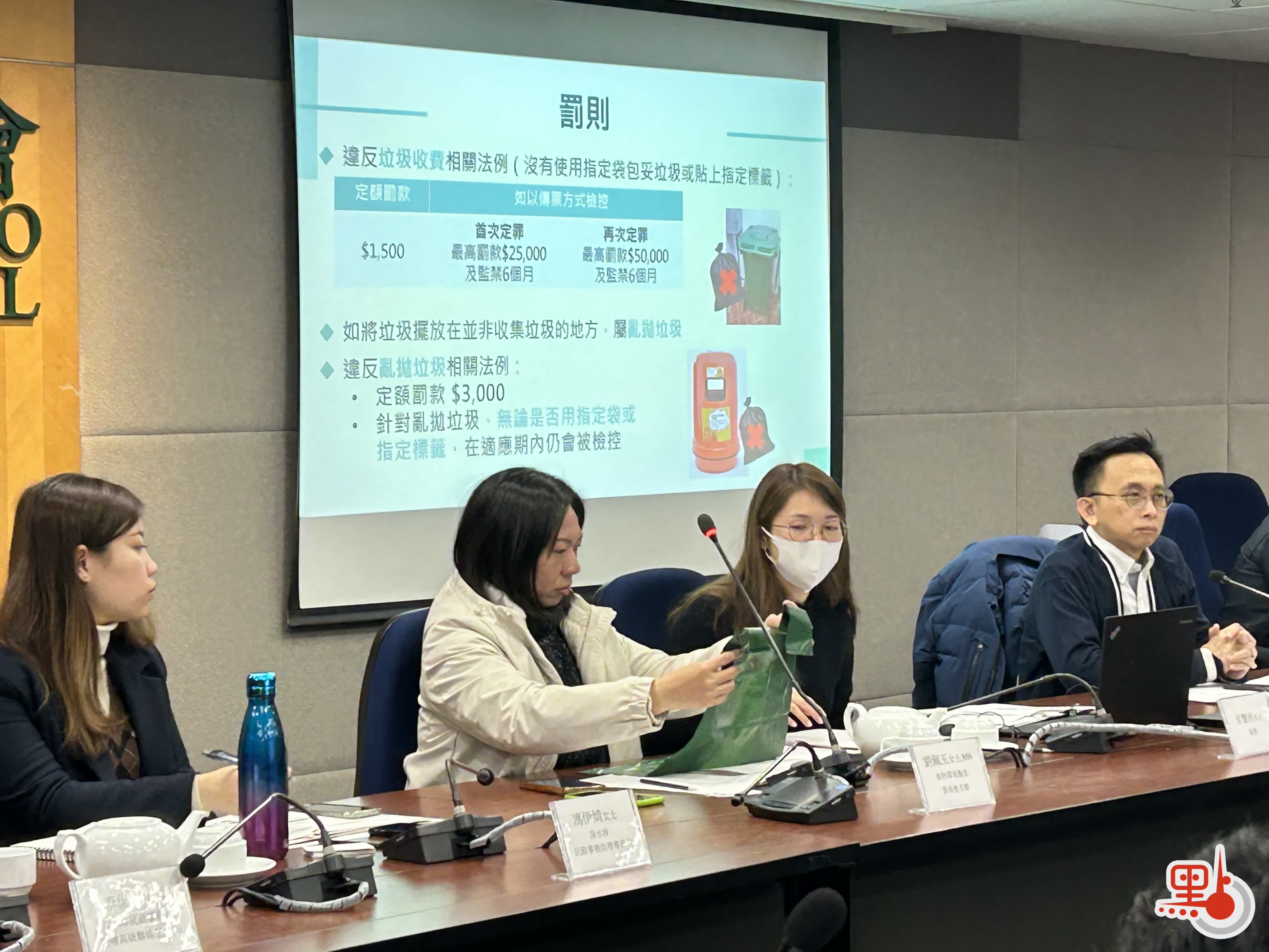 【點新聞報道】垃圾收費延至今年8月1日起實施,政府部門和相關樓宇4月1日起先行先試。第七屆深水埗區議會食物環境衞生委員會今日(25日)舉行會議,環境保護署人員到場介紹具體措施,詳細解答區議員關注的問題,表示署方正動員調配人手,希望接下來幾個月派同事落區解說。