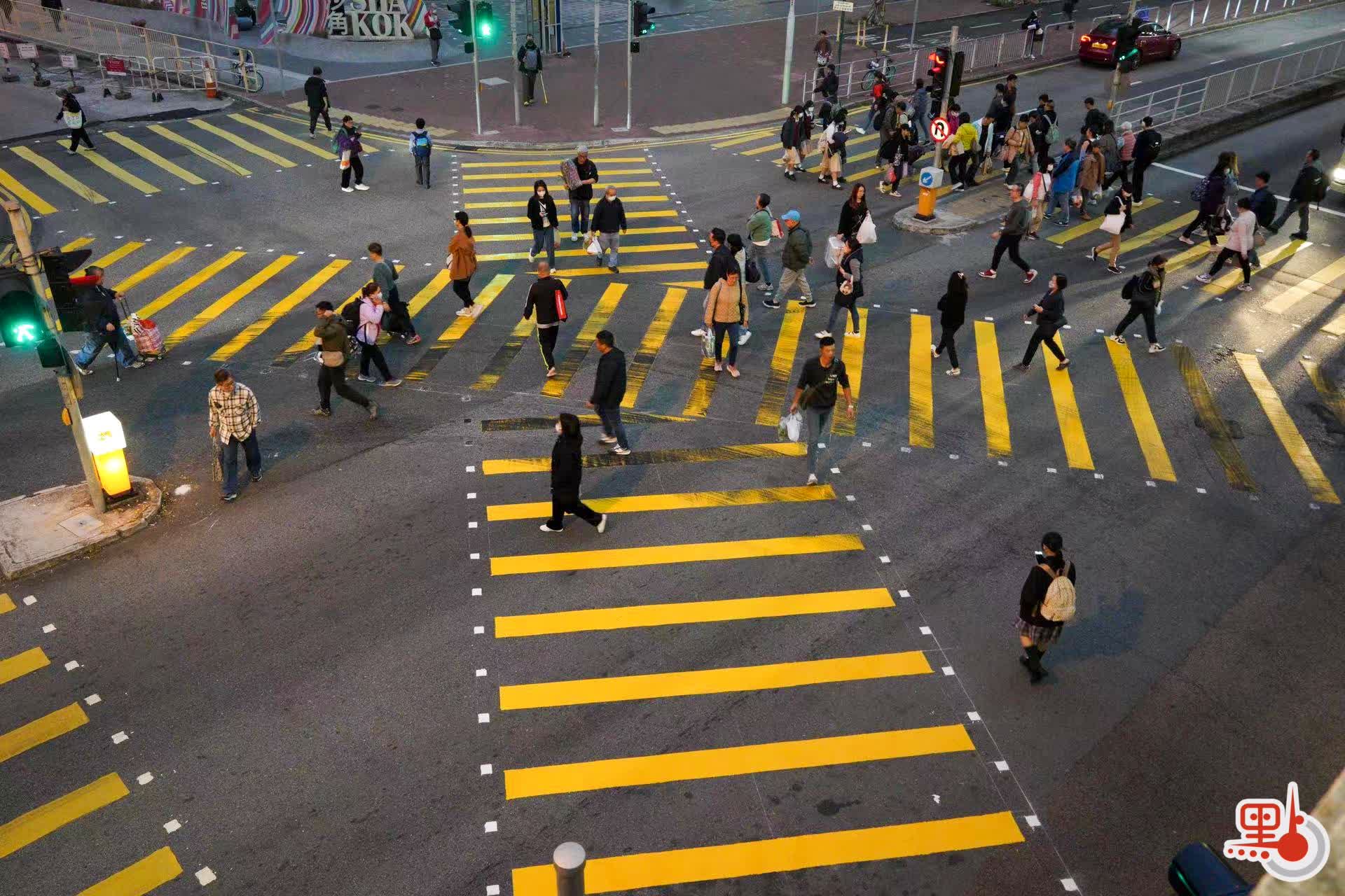 不少市民今日試行「打斜」橫過馬路,路旁亦有交通警視察過路流程。不少市民認同實施對角式過路,認為節省時間並方便行人。