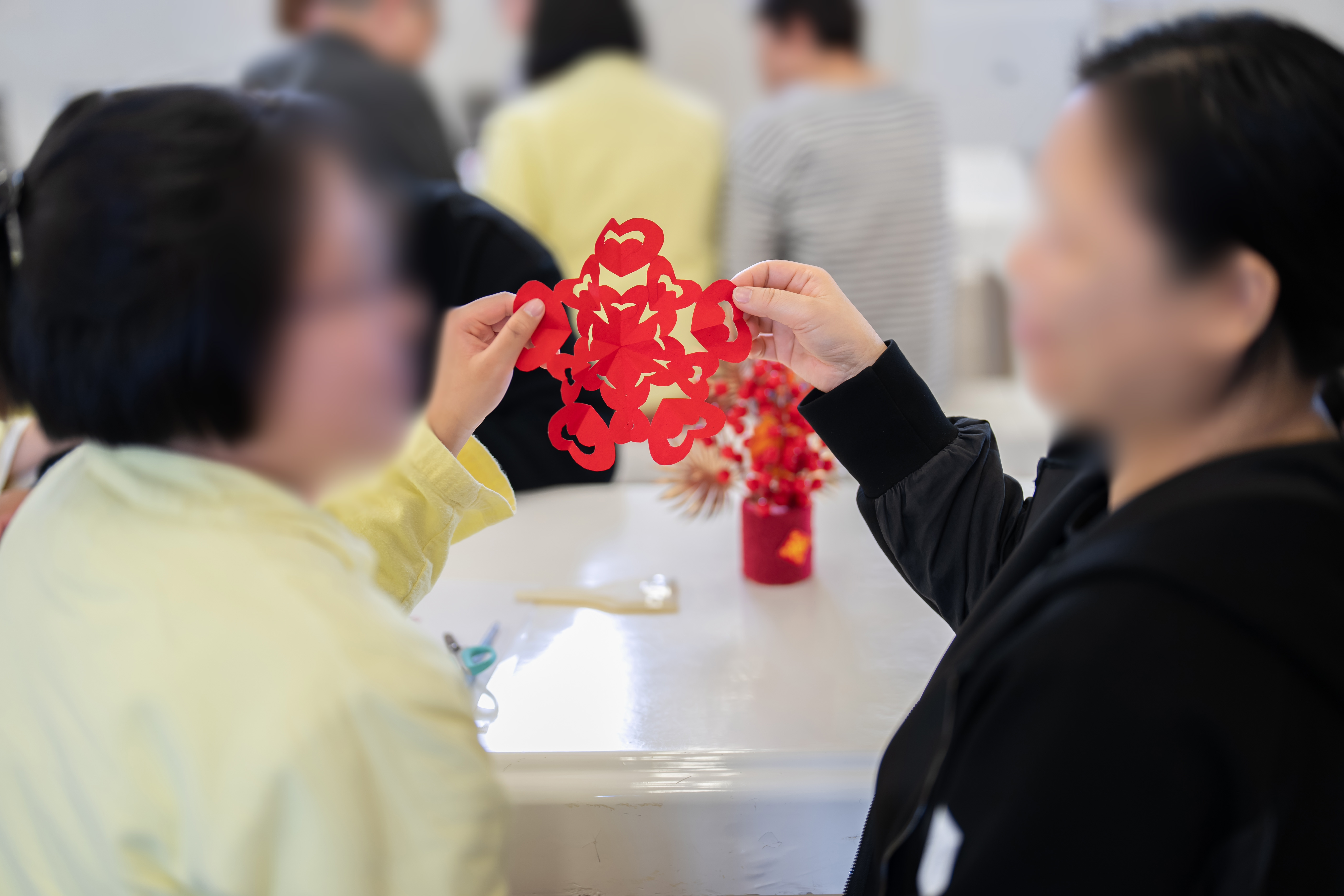 在囚青少年亦在親子互動環節中向家人及嘉賓講解中國剪紙,展示自己早前在「中國傳統文化工作坊」中所親身體驗的中國傳統文化技藝。青少年們與家人一同剪出「心連心」剪紙,象徵她們與家人、懲教署及社會持份者心連心,攜手助更生。