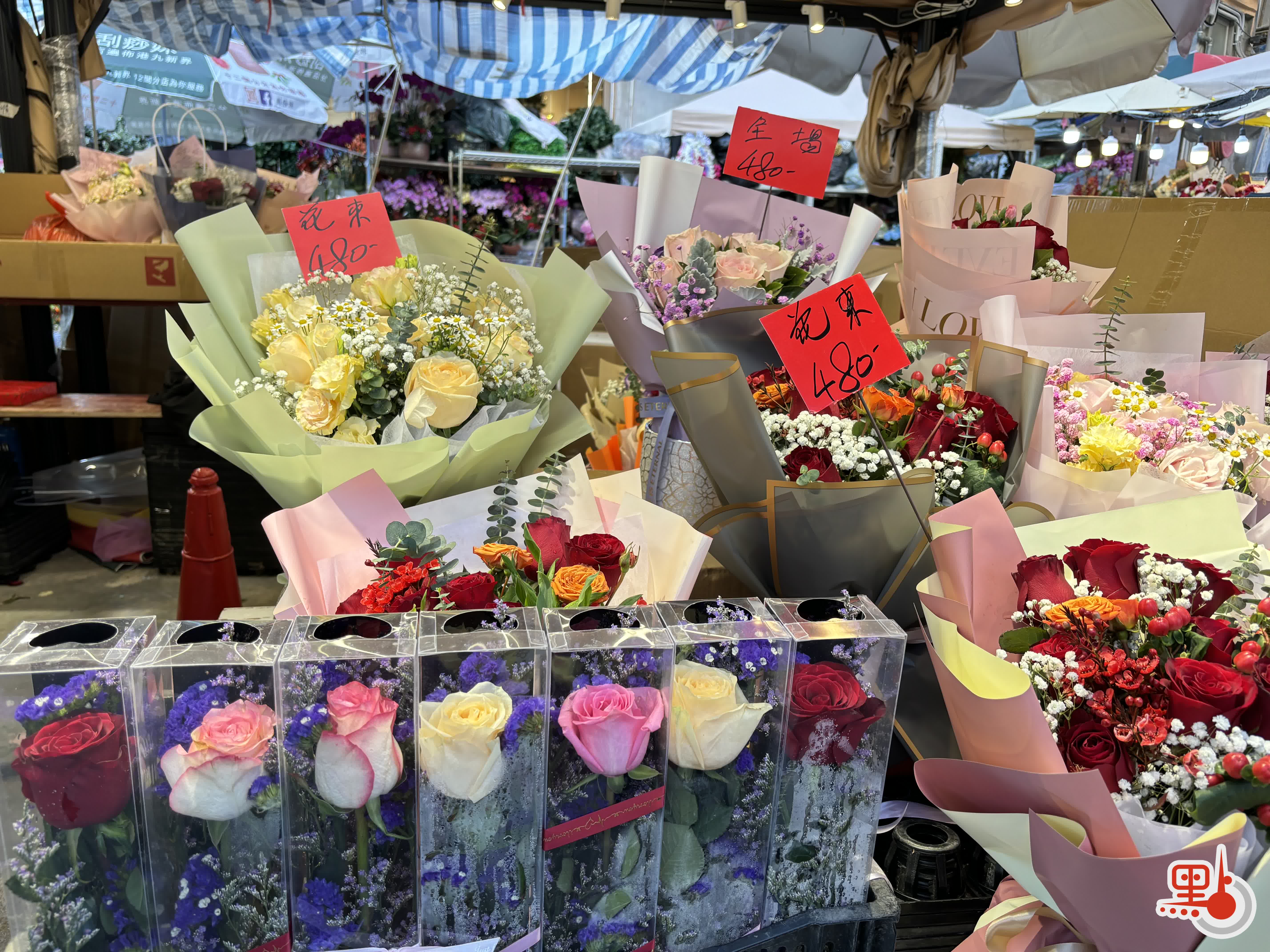 【點新聞報道】今日(14日)是情人節。點新聞記者下午來到旺角花墟,各個鮮花檔口均有售賣各式玫瑰花及花束,提供諸多選擇供市民購買。