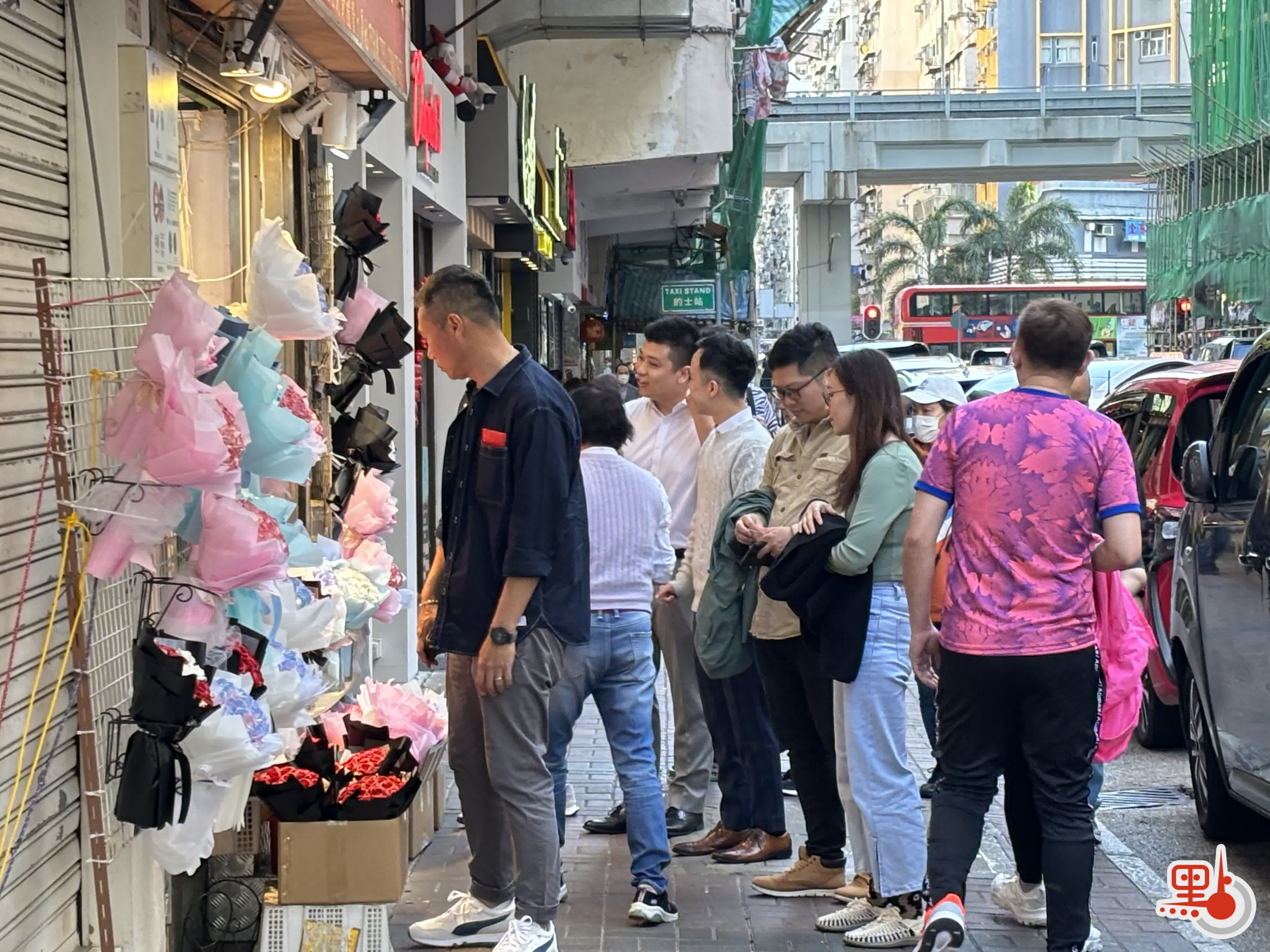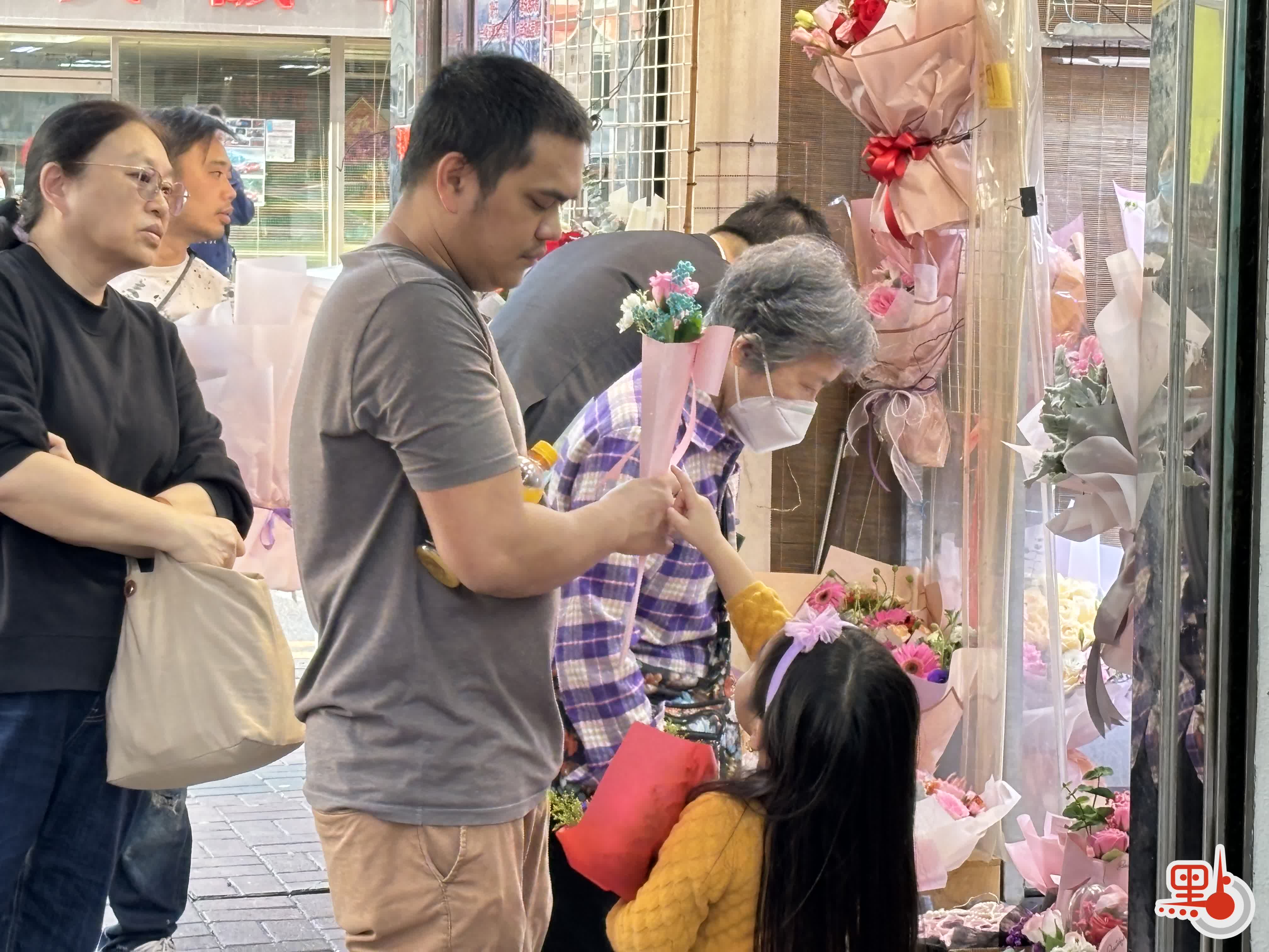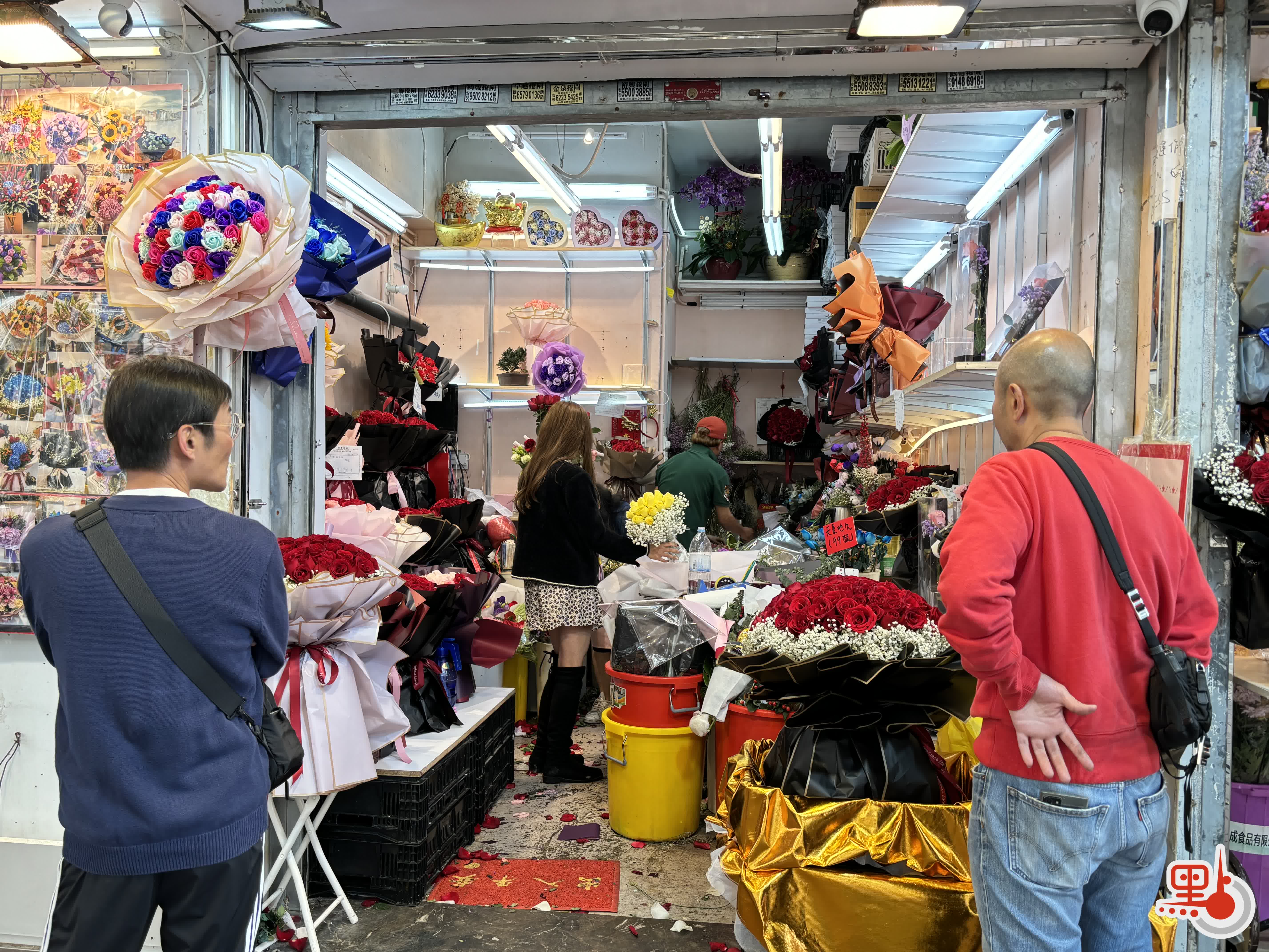 旺角花墟人頭攢動,大部分為男士。他們當中有人購買鮮花與伴侶,亦有人打算今日向心儀女生告白。記者亦見到不少情侶「拖手仔」行花墟,由女生親自挑選喜歡的花束,省去男士挑選的環節,都不失為一個簡單且直接的方式。