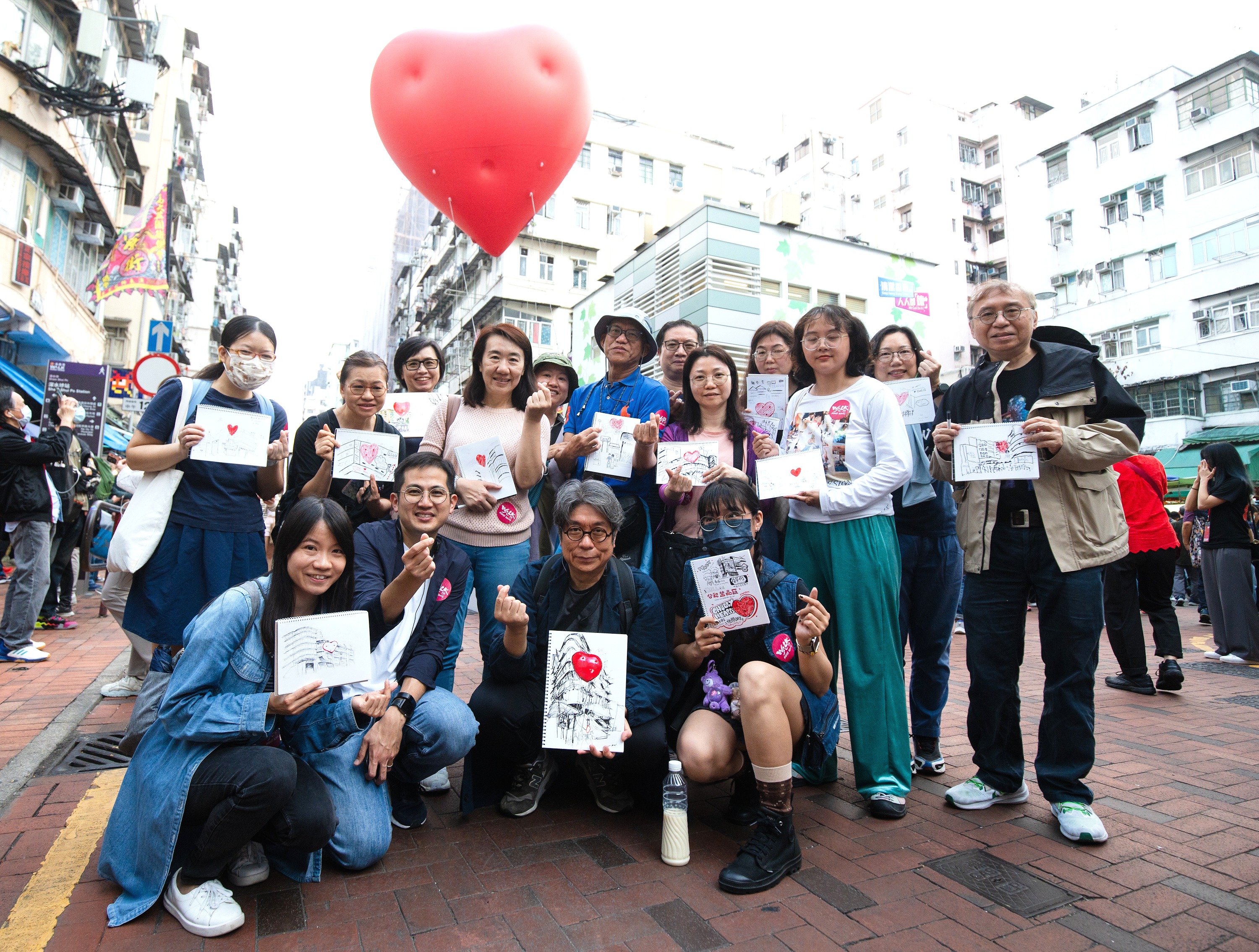 配合巨型紅心今日(19日)「快閃」深水埗桂林街,「快閃追心團」首團特別邀得城市寫生團隊「畫下嘢」擔任嘉賓,與20名參加者由深水埗福華街出發,沿途介紹區內特色建築與地道特色,行程以桂林街作結。