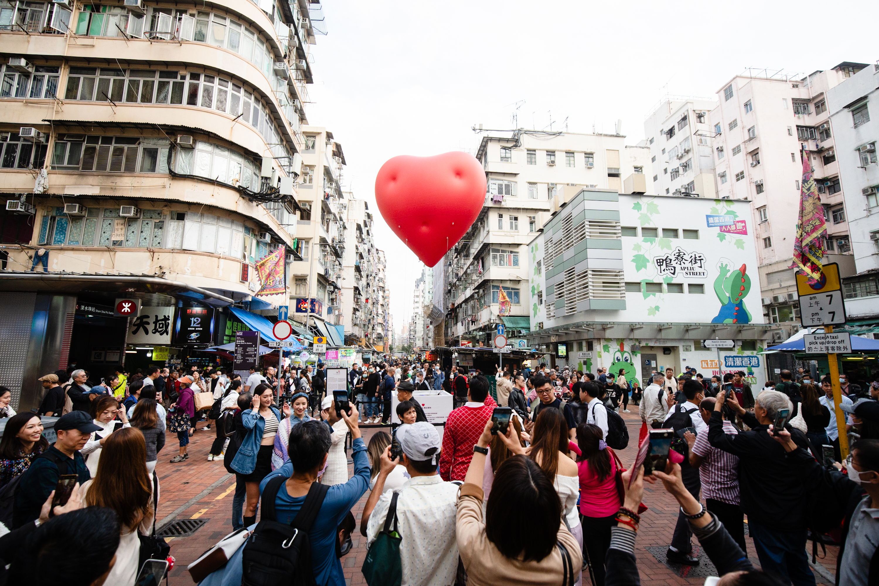 【點新聞報道】巨型飄浮紅心裝置「Chubby Hearts」於2月14日至24日在港展出,揭幕首3日便錄得逾20萬參觀人次。本地文化企業「活現香港」結合紅心裝置推出「快閃追心團」,由2月19日至23日,一連5日邀請不同界別的嘉賓參與,分別從速畫、攝影、電影、社區及建築角度,與參加者一同探索城市的互動,把文藝活動與地道文化互相結合,並透過深度交流,以嶄新視覺發掘城市魅力。