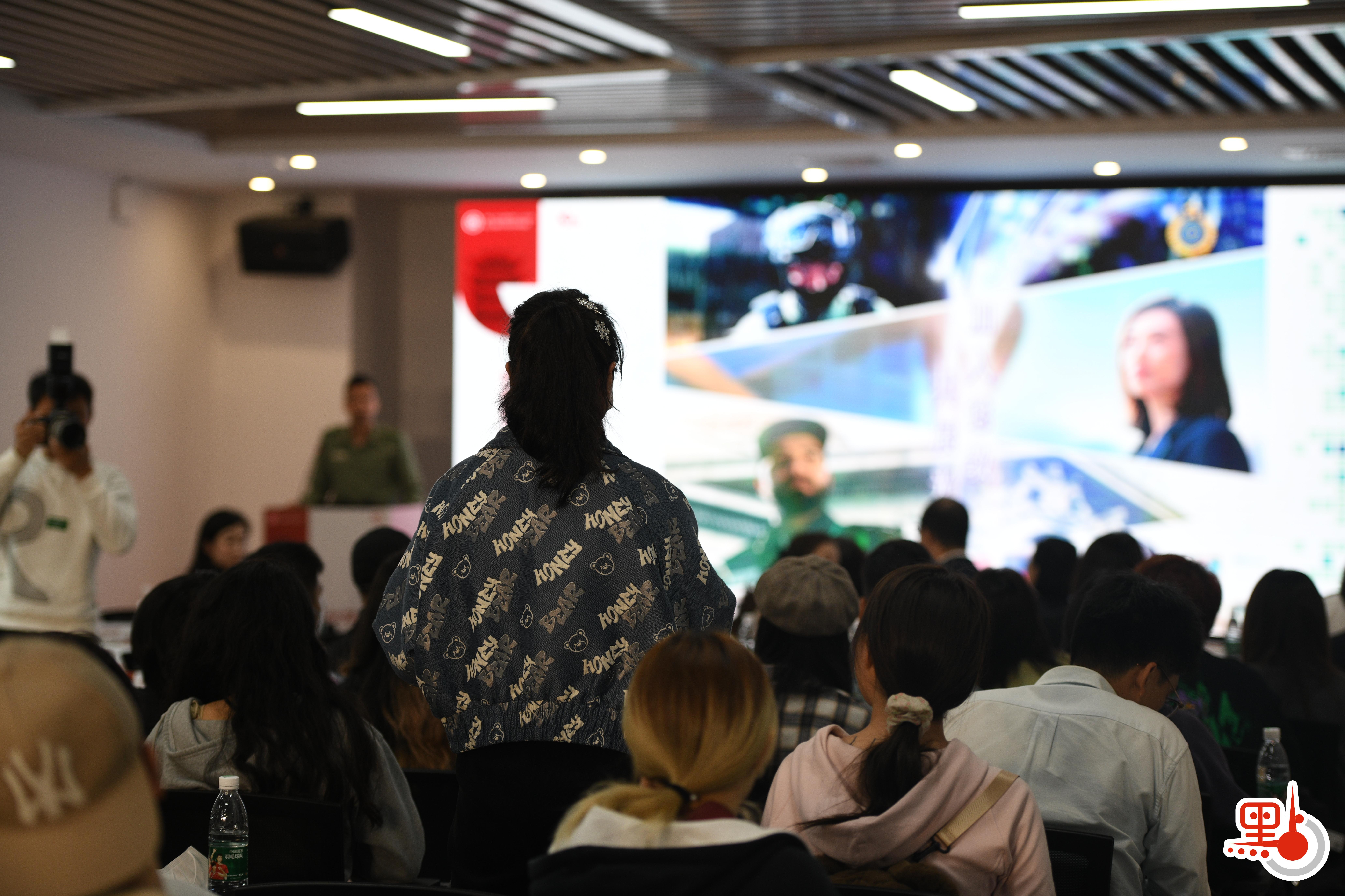 為吸引大學生加入紀律部隊,警務處、海關、懲教署、入境處原本形象嚴肅高冷的阿Sir、Madam,在講座中不時以活潑、生動的語言來介紹各自部門工作的優勢和特點;而學生們在認真聽講之後的互動環節,也就薪酬、福利、發展等提出了不少問題,甚至有同學問及「不會游泳是否就不能向警務處求職」,現場氛圍輕鬆。