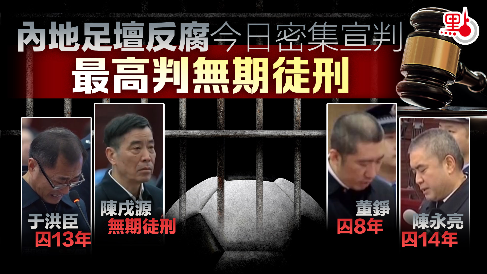 內地足壇反腐今日密集宣判 最高判無期徒刑