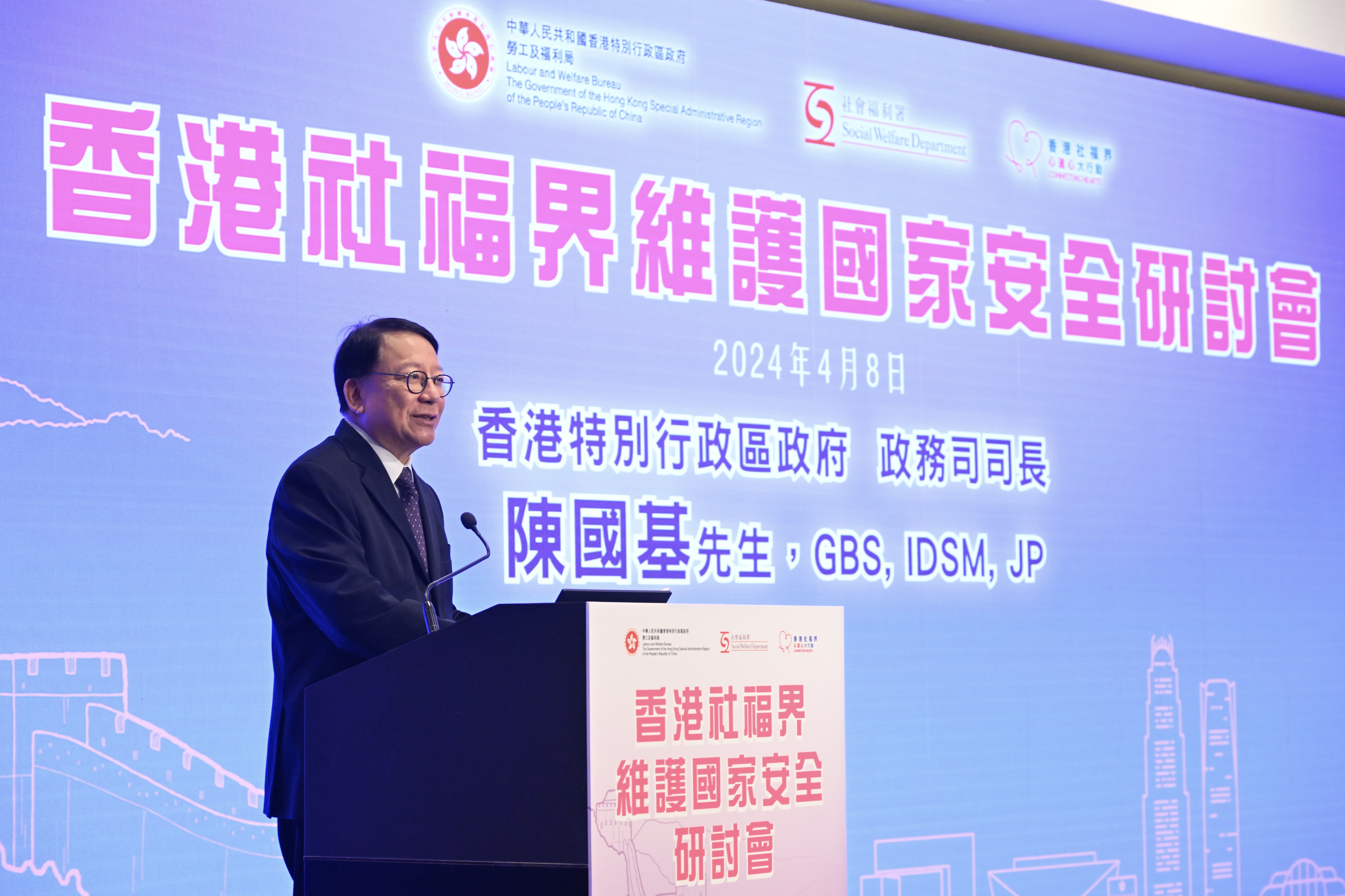 【點新聞報道】為響應本月的國家安全教育盛事「全民國家安全教育日」,由勞工及福利局和社會福利署,聯同香港社福界心連心大行動一同舉辦的香港社福界維護國家安全研討會今日(8日)舉行,中央政府駐港聯絡辦副主任何靖、清華大學法學教授王振民、香港社福界心連心大行動董事會主席管浩鳴等出席。政務司司長陳國基在致辭時表示,《維護國家安全條例》將提高特區政府維護國家安全的能力和水平,令香港有更安定的環境,有利社福界推行惠民生、暖民心的工作。