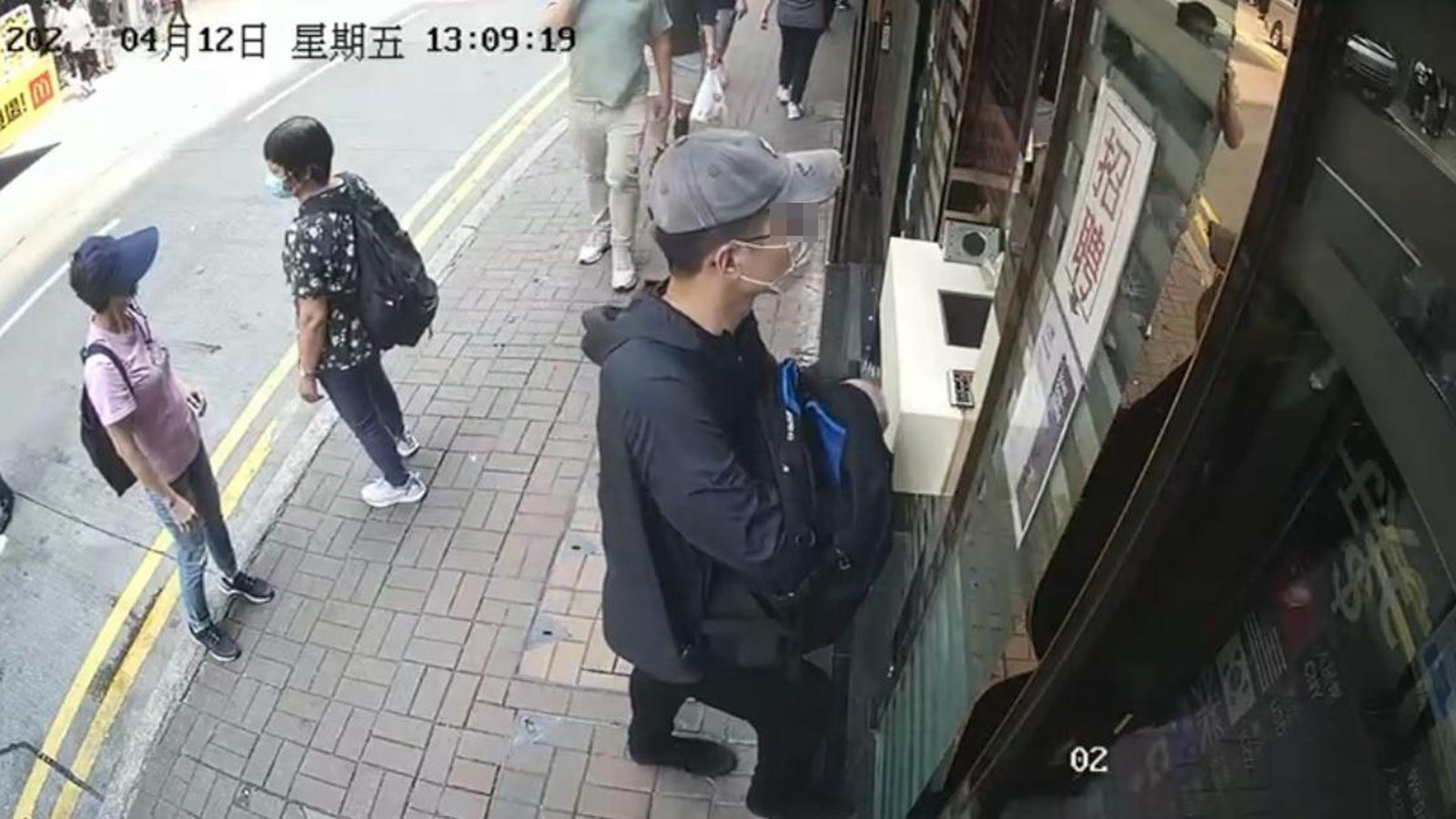 據疑似現場閉路電視畫面,一名男子頭戴灰色鴨舌帽、口罩及眼鏡,身穿深色衫褲,背囊掛在胸前,站在找換店櫃枱前,右手伸進袋中疑有所動作。