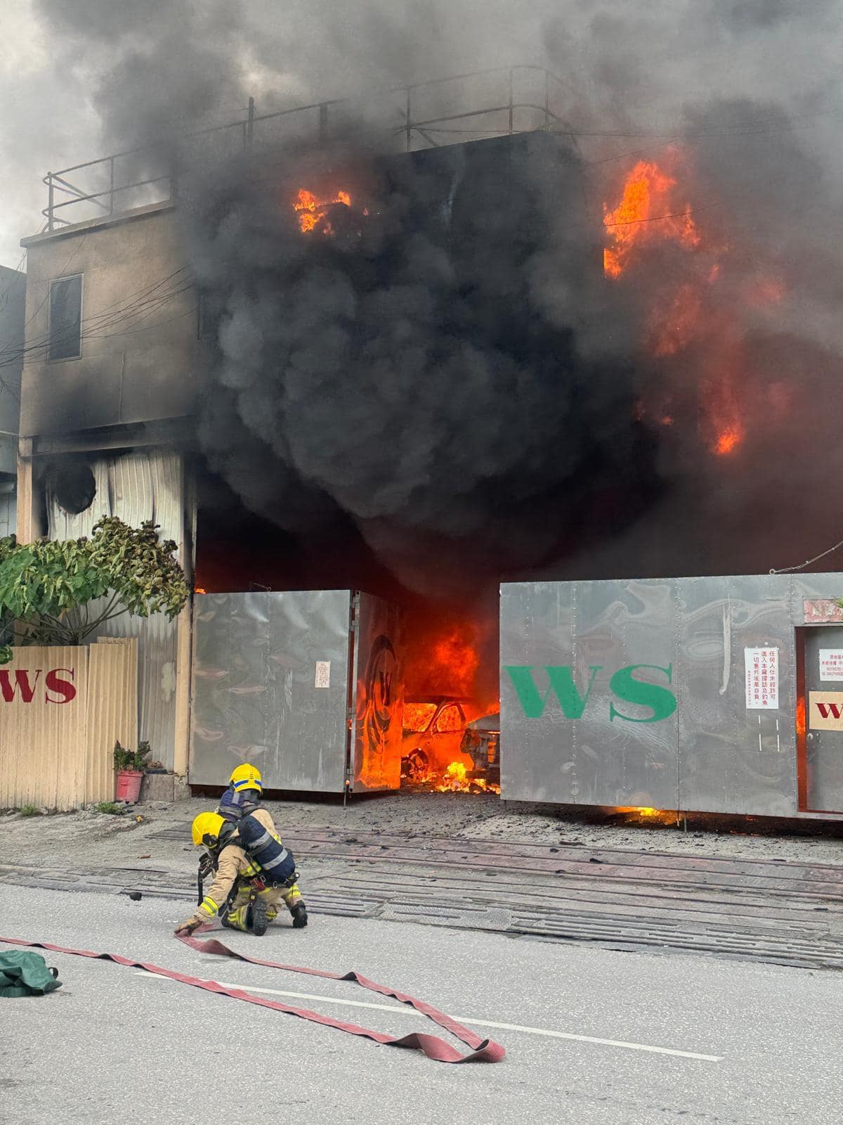 青衣担杆山路有鐵皮屋起火 消防在場灌救