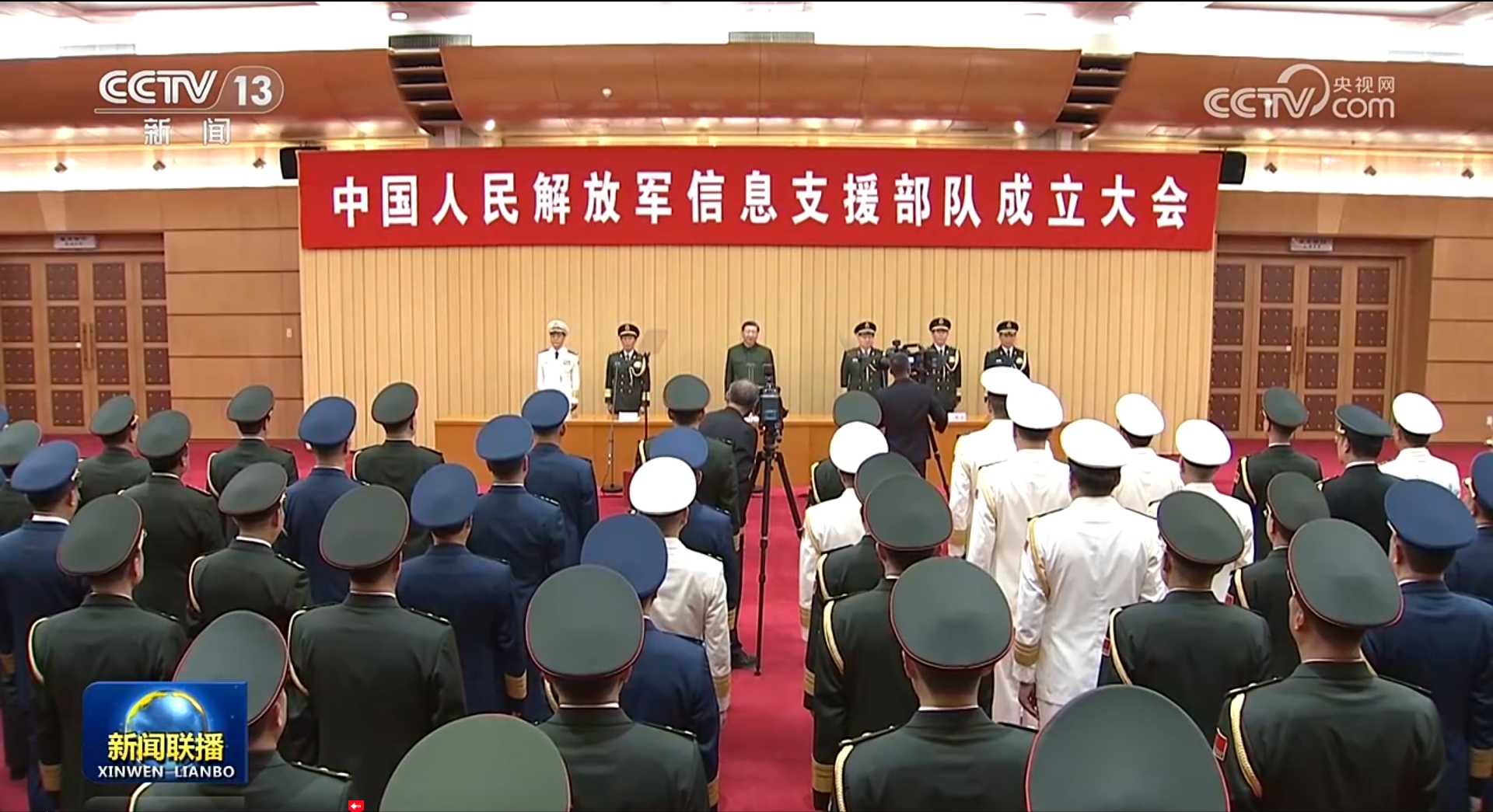 【點新聞報道】中國人民解放軍信息支援部隊成立大會今日(19日)在北京八一大樓隆重舉行。中共中央總書記、國家主席、中央軍委主席習近平向信息支援部隊授予軍旗並致訓詞,代表黨中央和中央軍委向信息支援部隊全體官兵致以熱烈祝賀。他強調,要貫徹新時代強軍思想,貫徹新時代軍事戰略方針,堅持政治建軍、改革強軍、科技強軍、人才強軍、依法治軍,聚焦備戰打仗,按照體系融合、全域支撐的戰略要求,銳意進取,扎實工作,努力建設一支強大的現代化信息支援部隊。