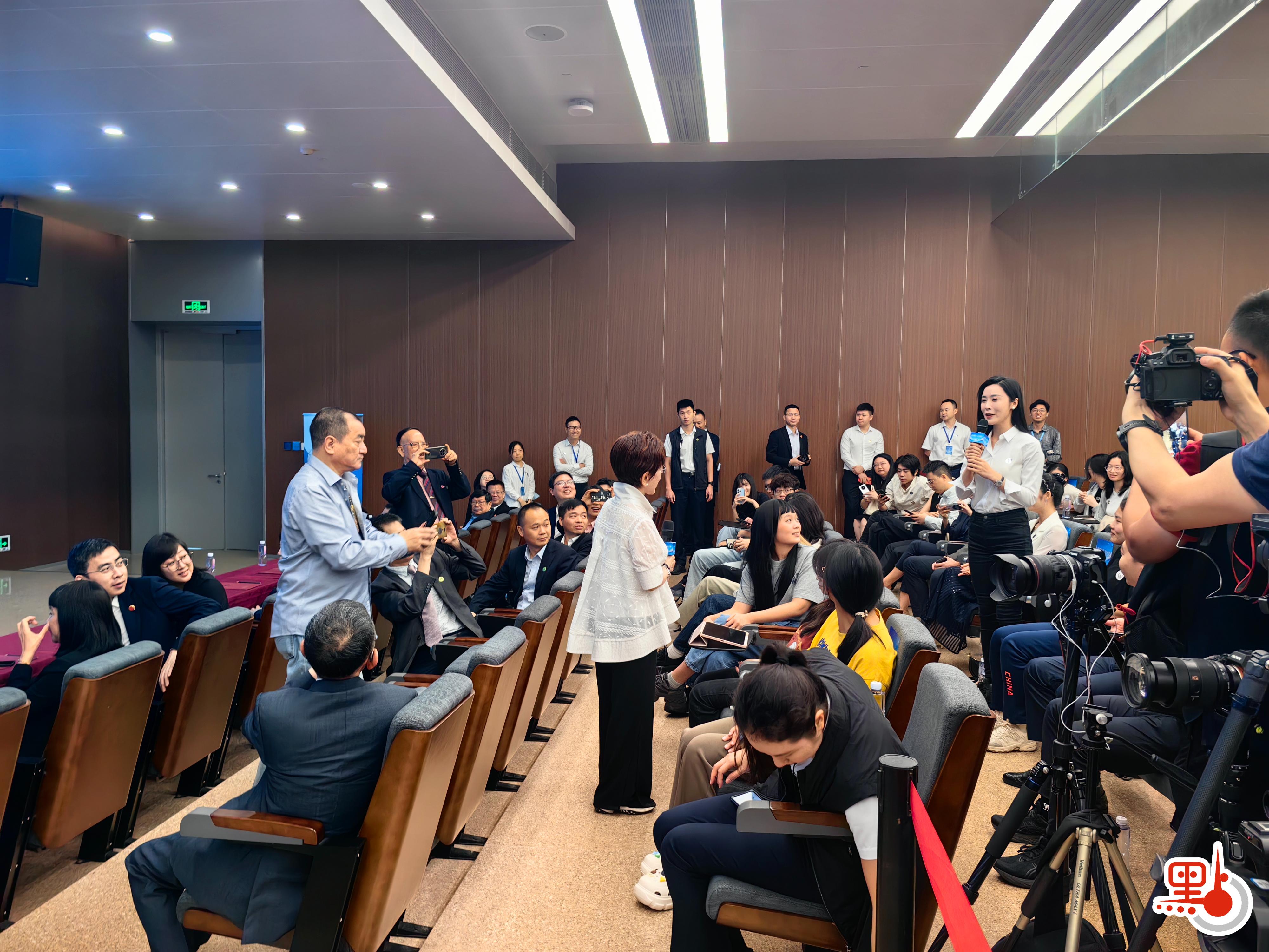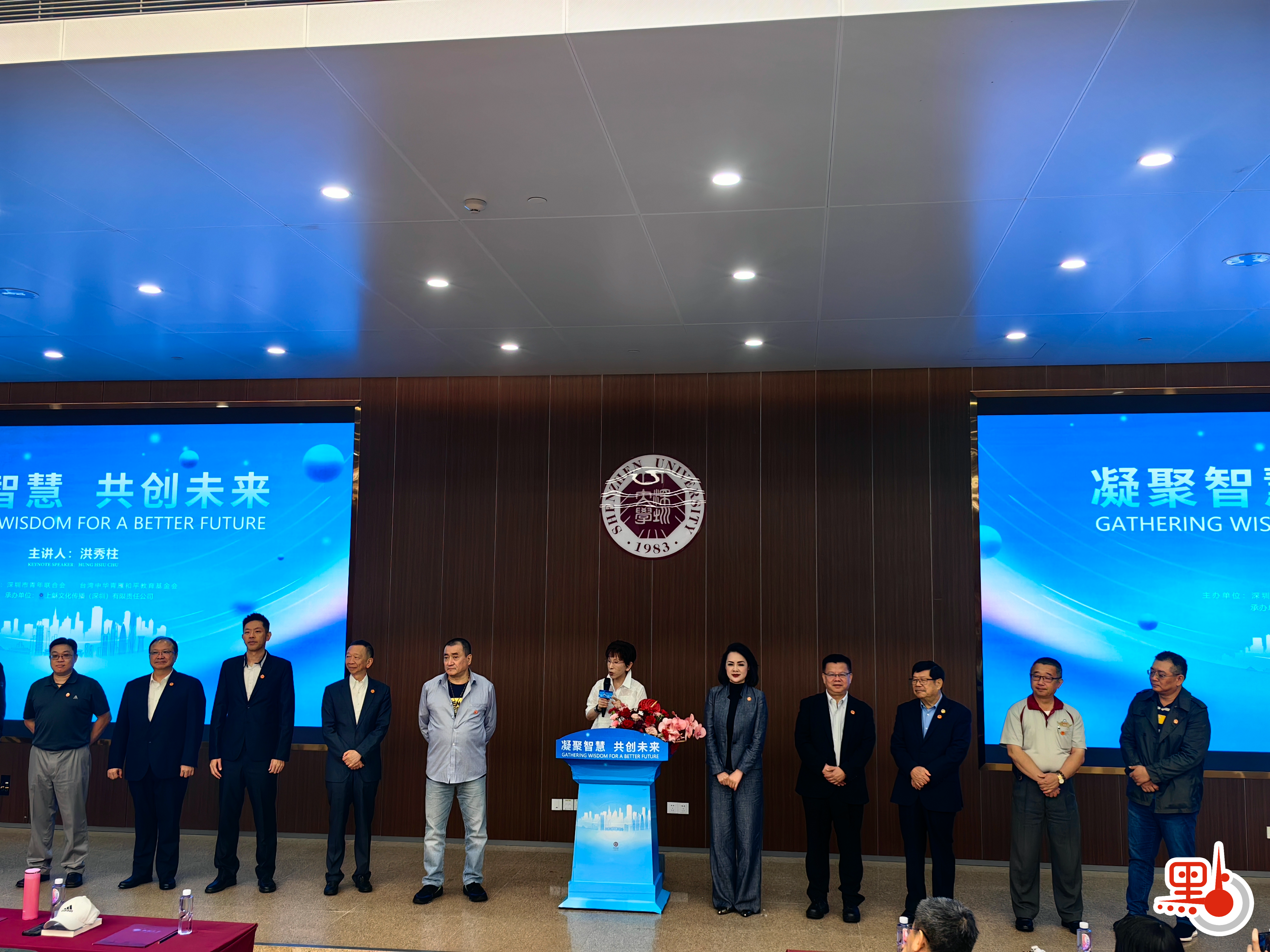 洪秀柱在深參觀期間,還見到了來自台灣和香港的青年,與他們親切交流,傾聽他們在深圳逐夢的故事。在深圳大學進行的「凝聚智慧 共創未來」講座上,洪秀柱及參訪團一行與深台青年同唱《阿里山》、《當我們同在一起》歌曲,期盼兩岸同在一起,永久不分離。