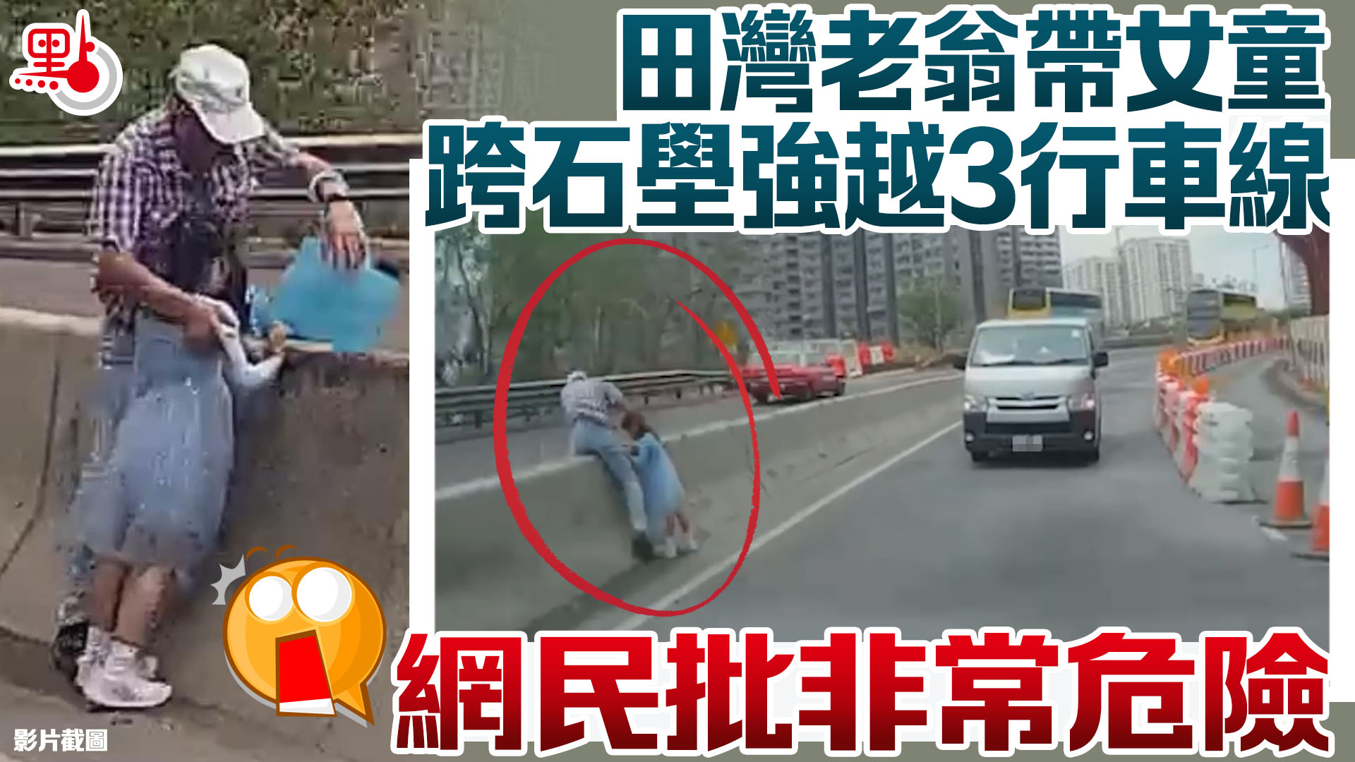 田灣老翁帶女童跨石壆強越3行車線 網民批非常危險