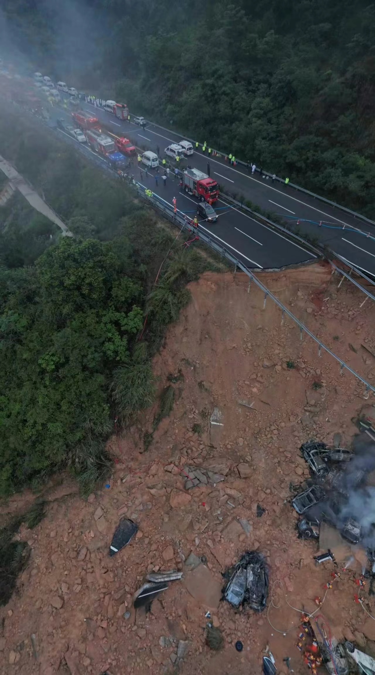 據央視新聞報道,截至上午11時45分,經現場核查,事故共造成18部車輛陷落(未發現危化車輛、客車等大型車輛),涉及人員共49人,其中確認死亡人數19人,30人正在醫院全力救治,暫無生命危險。公路塌方路面長約17.9米,面積約184.3平方米。