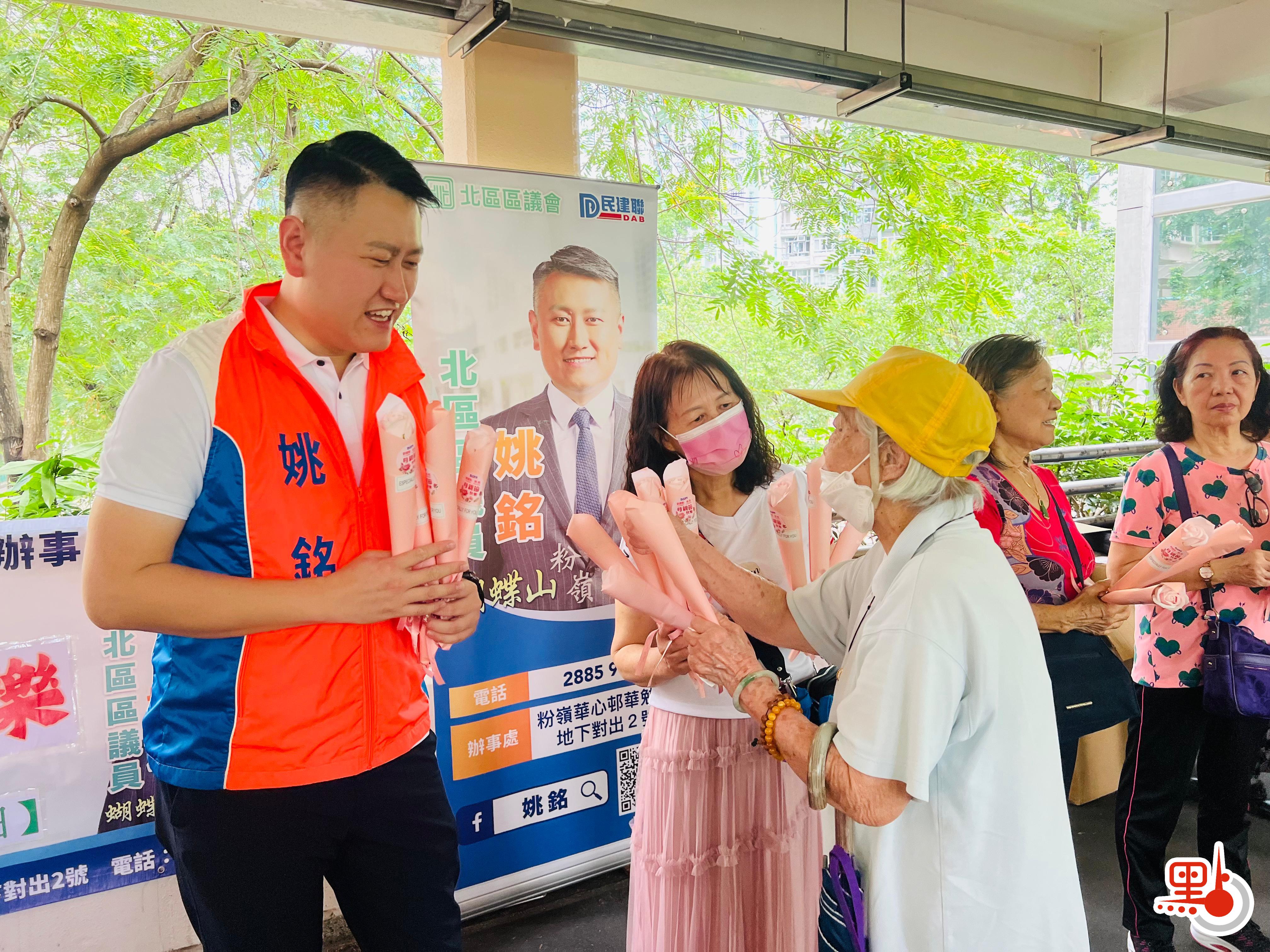 「贈送玫瑰,手有餘香」。北區區議員姚銘在這個重要日子,特別聯同媽媽及義工到粉嶺派發香皂花,希望能身體力行,向每位家庭傳遞快樂、幸福與祝福。