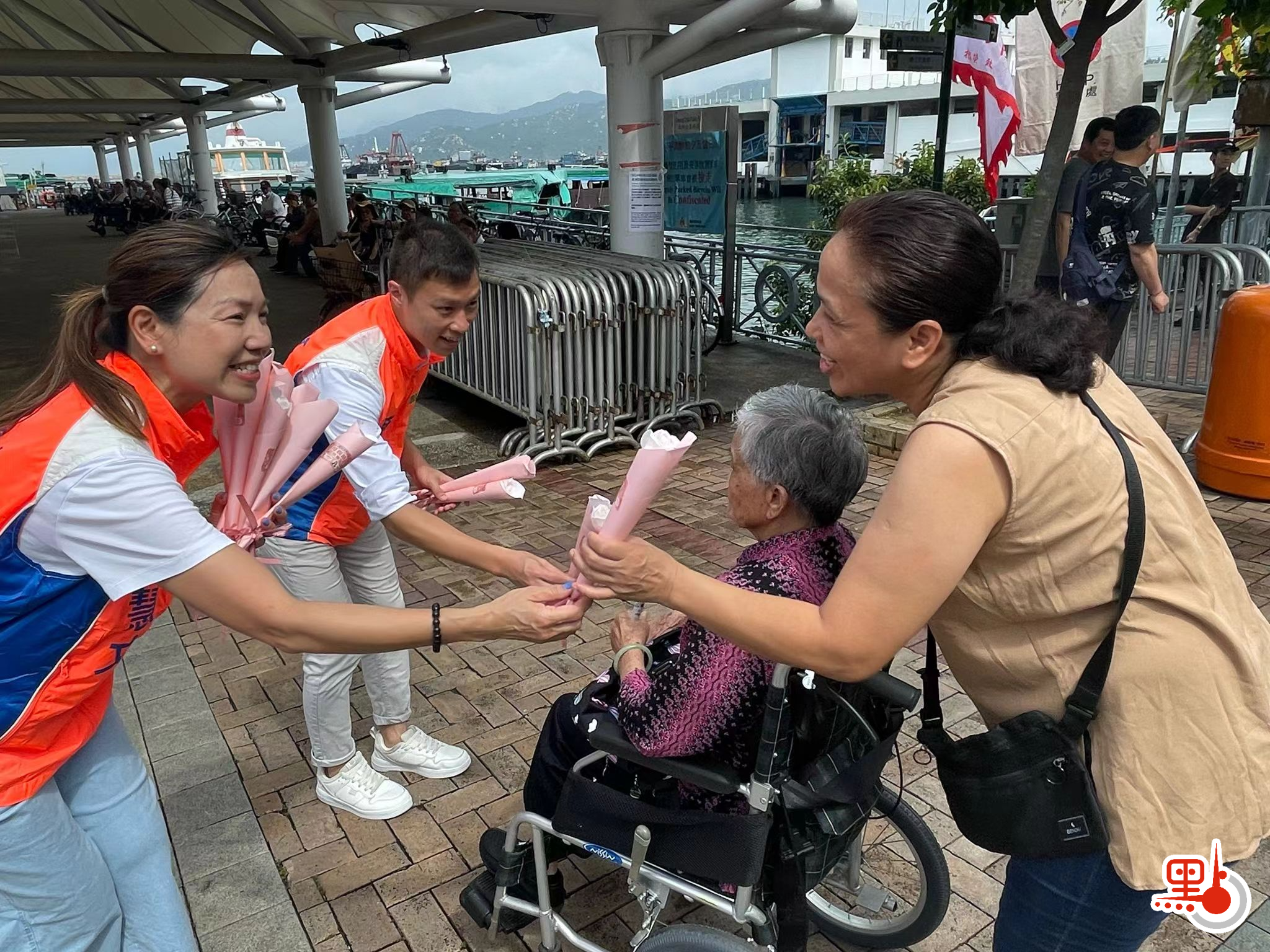 離島區議員葉培基亦到訪長洲派發香皂花。他引用古詩,「誰言寸草心,報得三春暉」,形容每位母親辛勤地養育下一代成長,希望能藉着母親節到來送上小小心意,感謝她們對家庭及社會的付出。