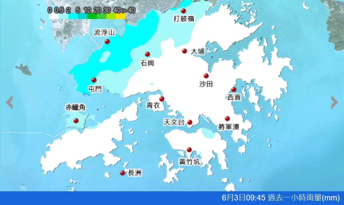 天文台今早9時45分發出特別天氣提示,指未來一兩小時香港廣泛地區可能受大雨影響,提醒市民提高警覺。