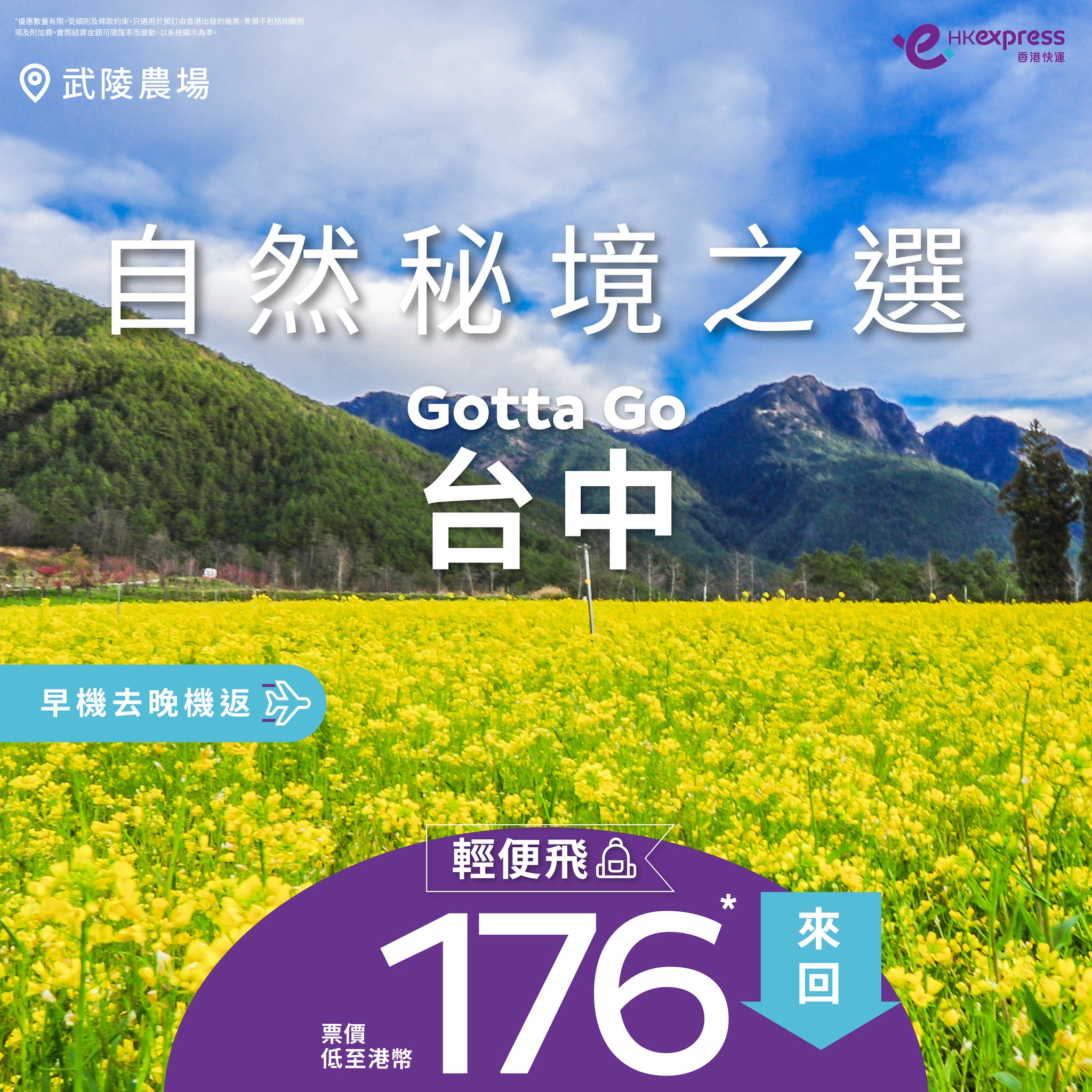 HK Express推台中限時優惠 往返機票176元(附連結)