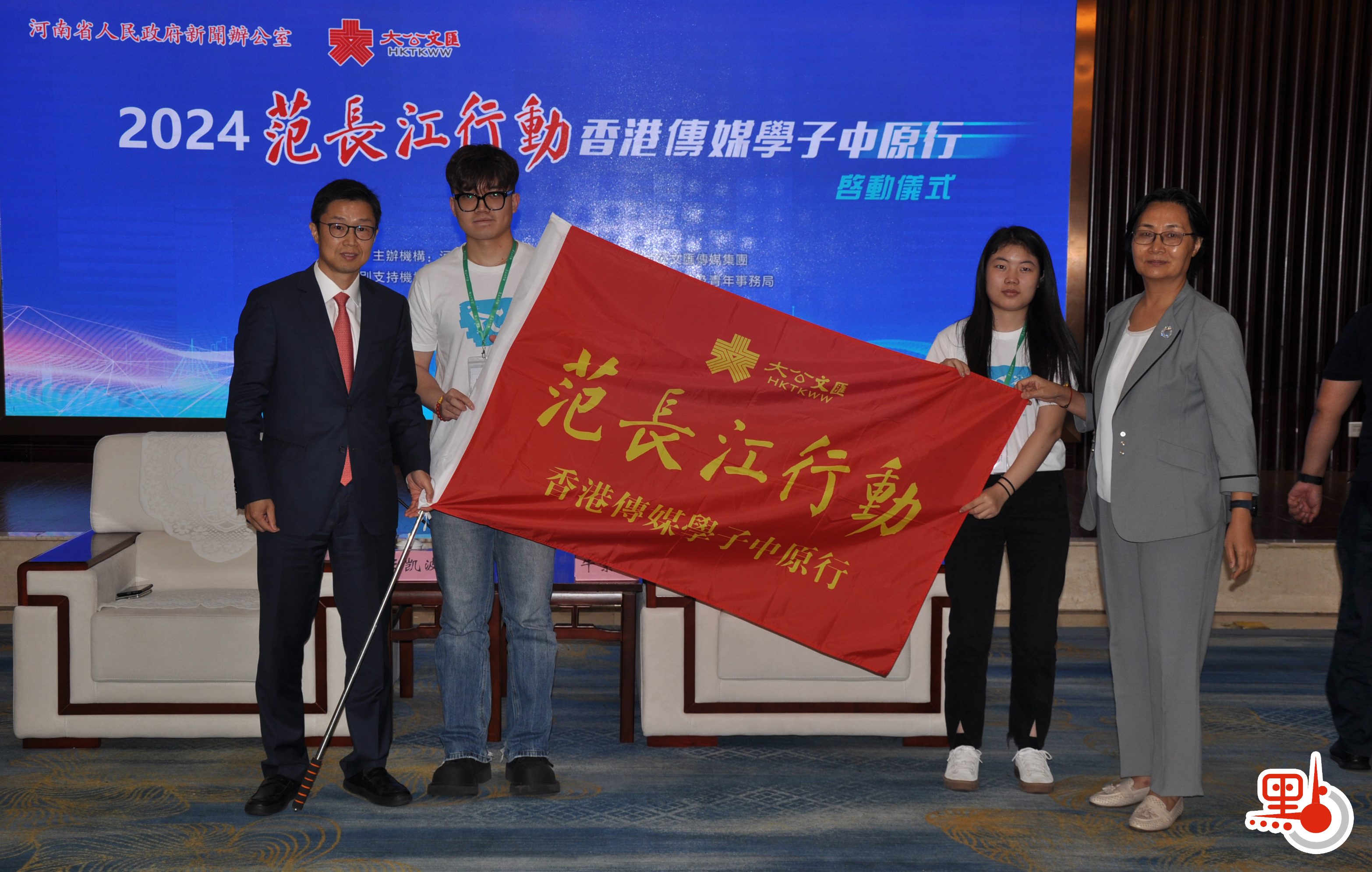 【點新聞報道】大公報今日(17日)迎來創刊122周年的紀念日。由香港大公文匯傳媒集團、河南省委宣傳部共同主辦的「2024范長江行動——香港傳媒學子中原行」活動,當天在河南鄭州啟動。河南省委宣傳部二級巡視員牛素玲與香港大公文匯傳媒集團副董事長、副總編輯王凱波為採訪團授旗。