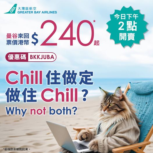 大灣區航空推往來曼谷機票優惠 憑優惠碼訂票票價240蚊起