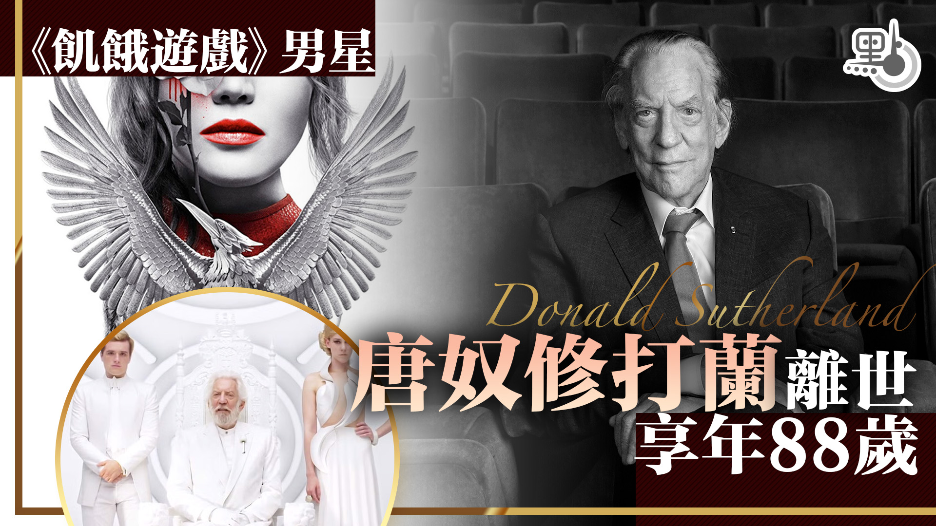 【點新聞報道】《飢餓遊戲》(The Hunger Games)老牌加拿大男星唐奴修打蘭(Donald Sutherland)因為久病不癒,6月20日於邁阿密離世,享年88歲。
