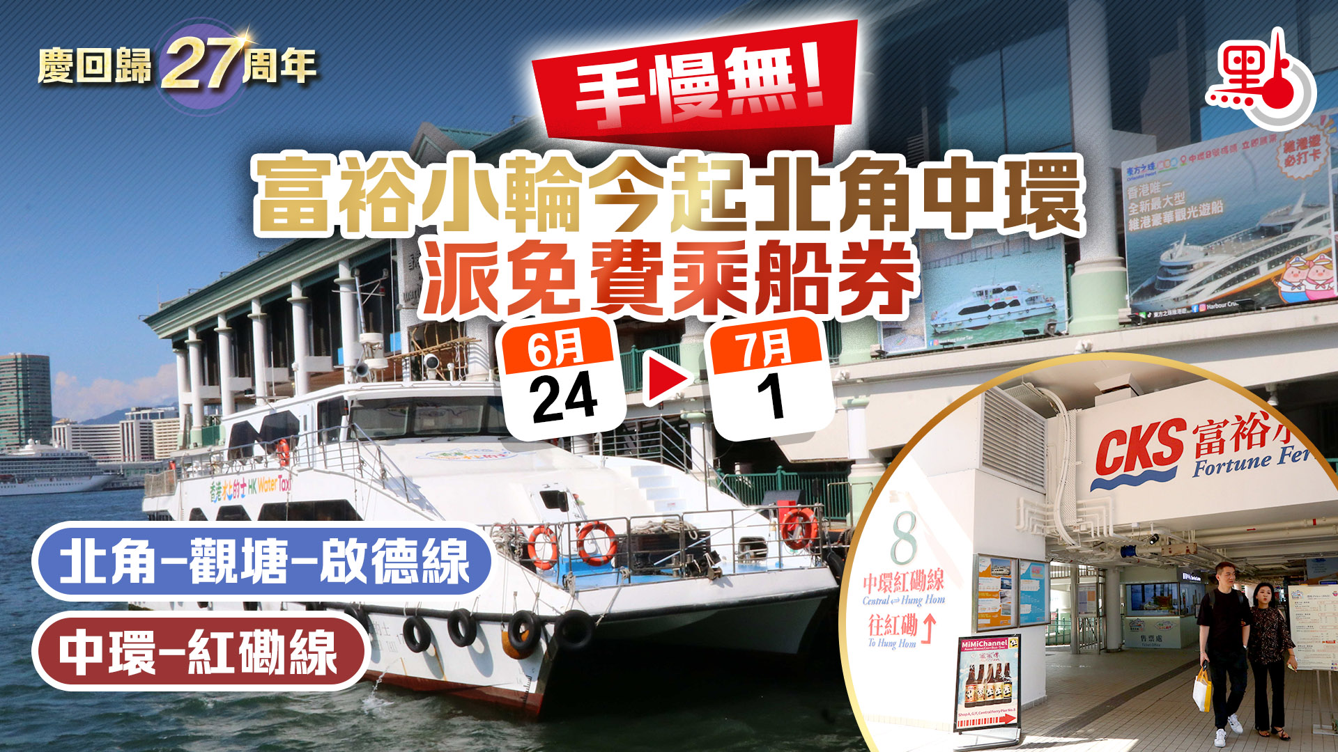 手慢無!富裕小輪今起北角中環派免費乘船券