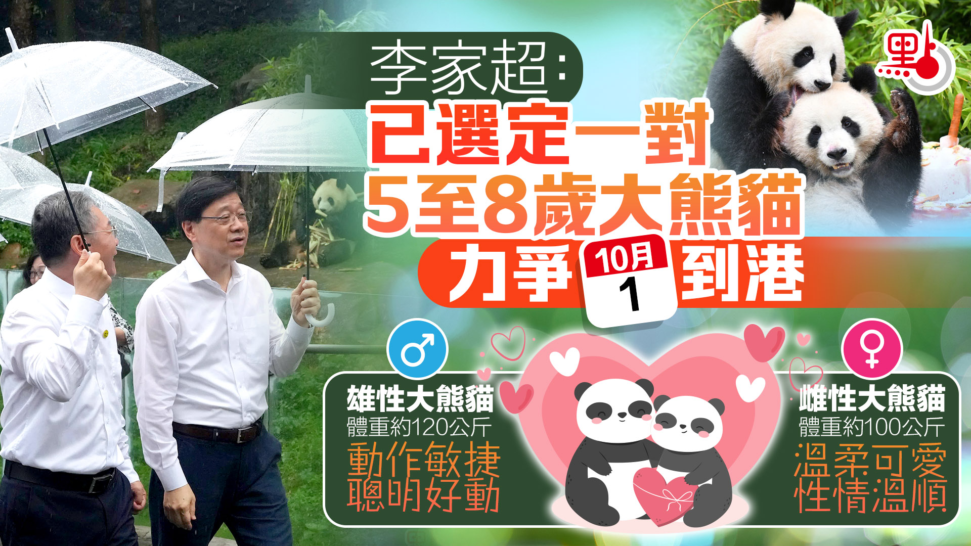 【點新聞報道】行政長官李家超及夫人李林麗嬋正在四川進行訪問行程,到訪中國大熊貓保護研究中心都江堰基地,重點商討和了解有關中央送贈香港特別行政區一對大熊貓赴港的整體安排,並和四川省領導會面。李家超今日(9日)見記者時表示,已經選定一對年齡約5至8歲的大熊貓,牠們現時已在都江堰基地作適應準備,當局會全力作好準備,力爭讓大熊貓10月1日到港。