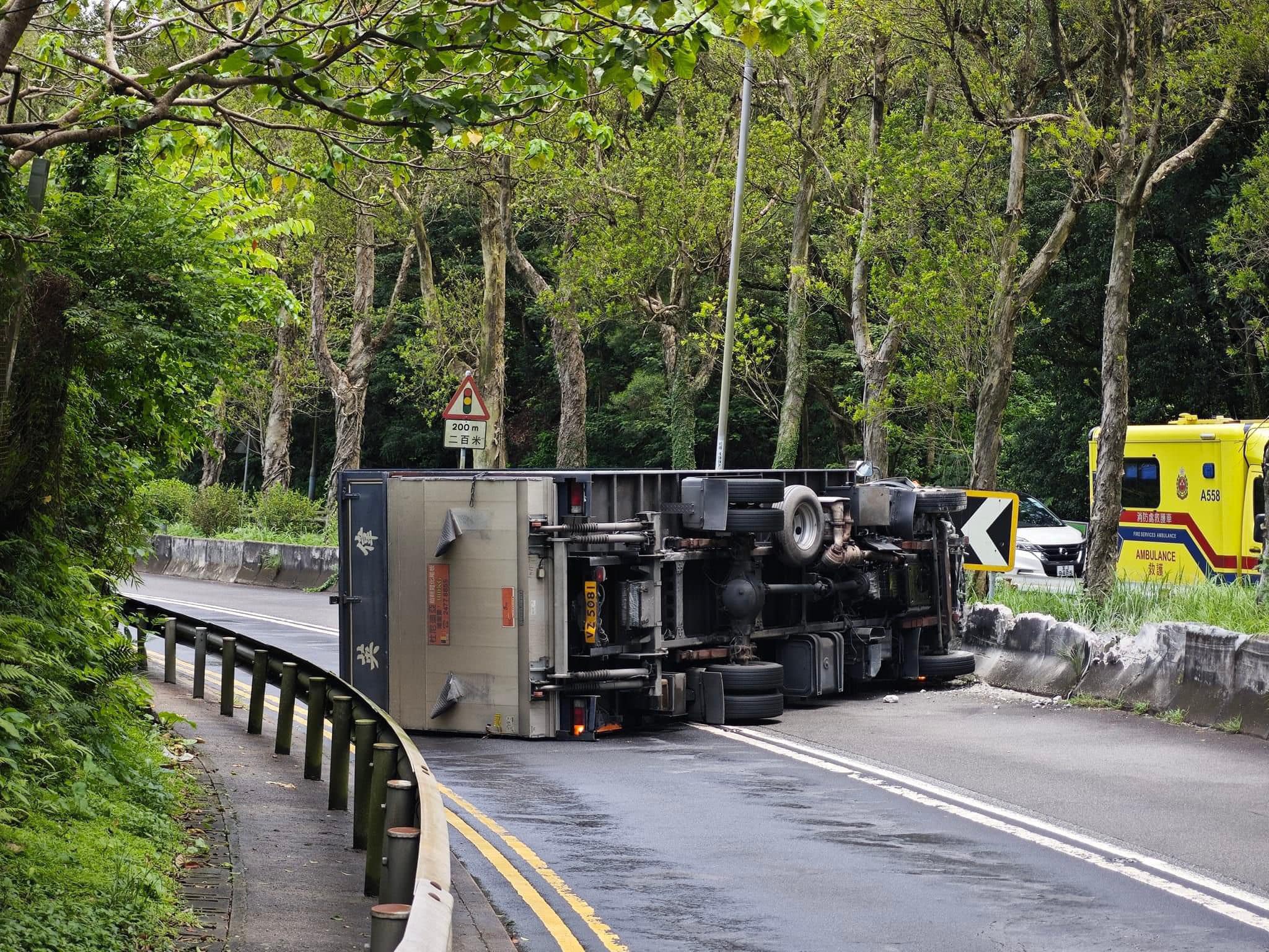 清水灣道貨車自炒翻側釀2傷 往彩虹方向全線封閉