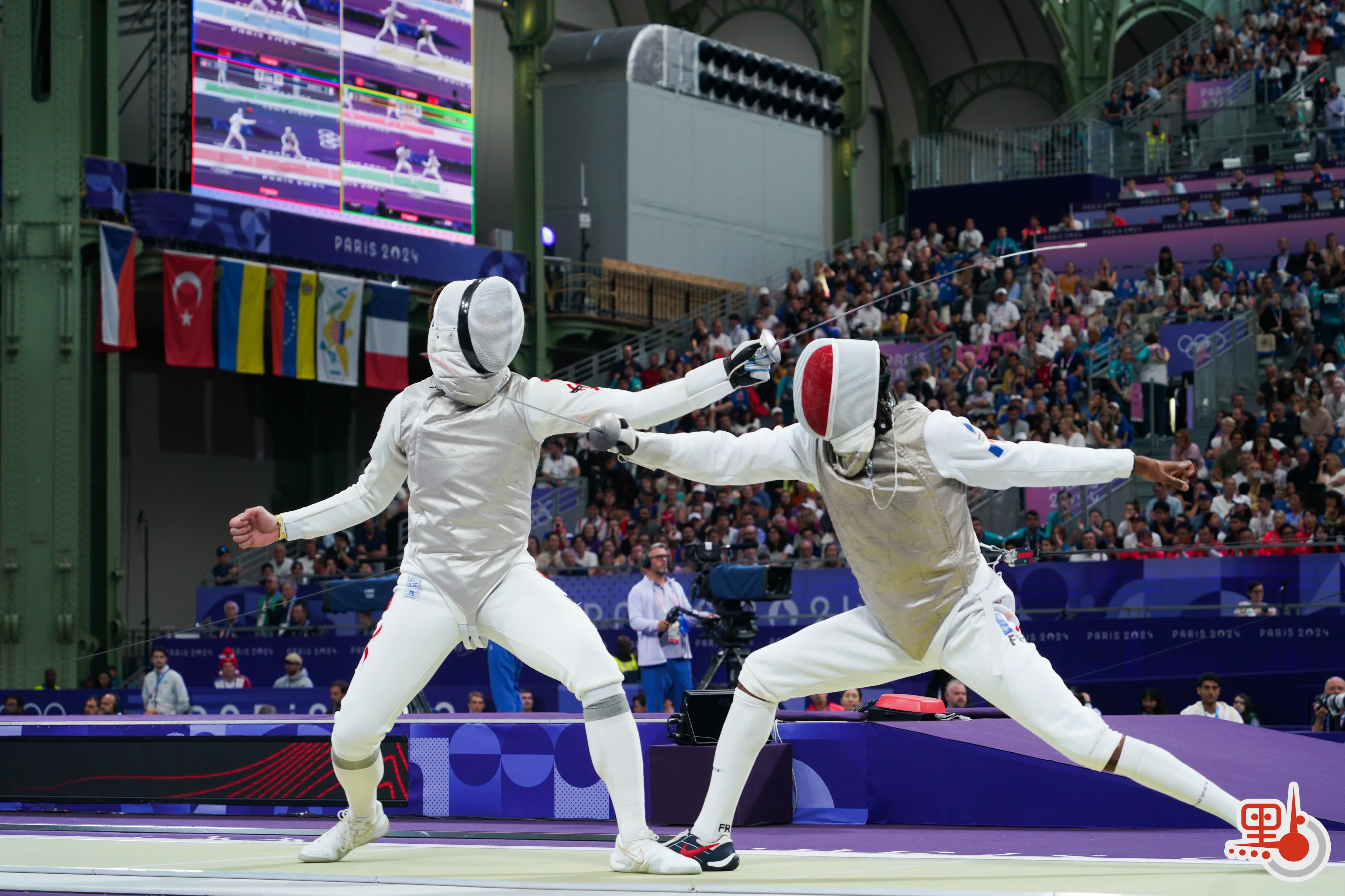 【點新聞報道】張家朗出戰男子花劍個人賽,力爭衛冕。今(29日)晚男子個人花劍8強比賽中,張家朗15:14淘汰法國劍手勒科(Enzo Lefort),順利晉級4強!