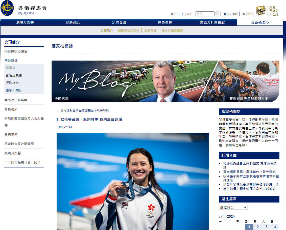 應家柏稱,何詩蓓自於東京奧運會勇奪兩枚銀牌後,三年來不斷為自己以至香港的體育水平樹立新的標準。多年來,她也展示了努力不懈,持續改進的精神。早於2013年,她已在由《南華早報》舉辦及馬會贊助的「傑出學生選舉」中獲選,優厚的潛質與卓越表現早已獲認許。十年後的今天,馬會十分榮幸能透過旨在獎勵和鼓勵中國香港運動員超卓表現的「賽馬會優秀運動員獎勵計劃」,再次嘉獎何詩蓓。除了兩天前因應她在女子200米自由泳贏得銅牌而向她頒發150萬港元獎金外,今天馬會也因應她獲得第二面銅牌而再頒發獎金150萬港元,以作鼓勵。
