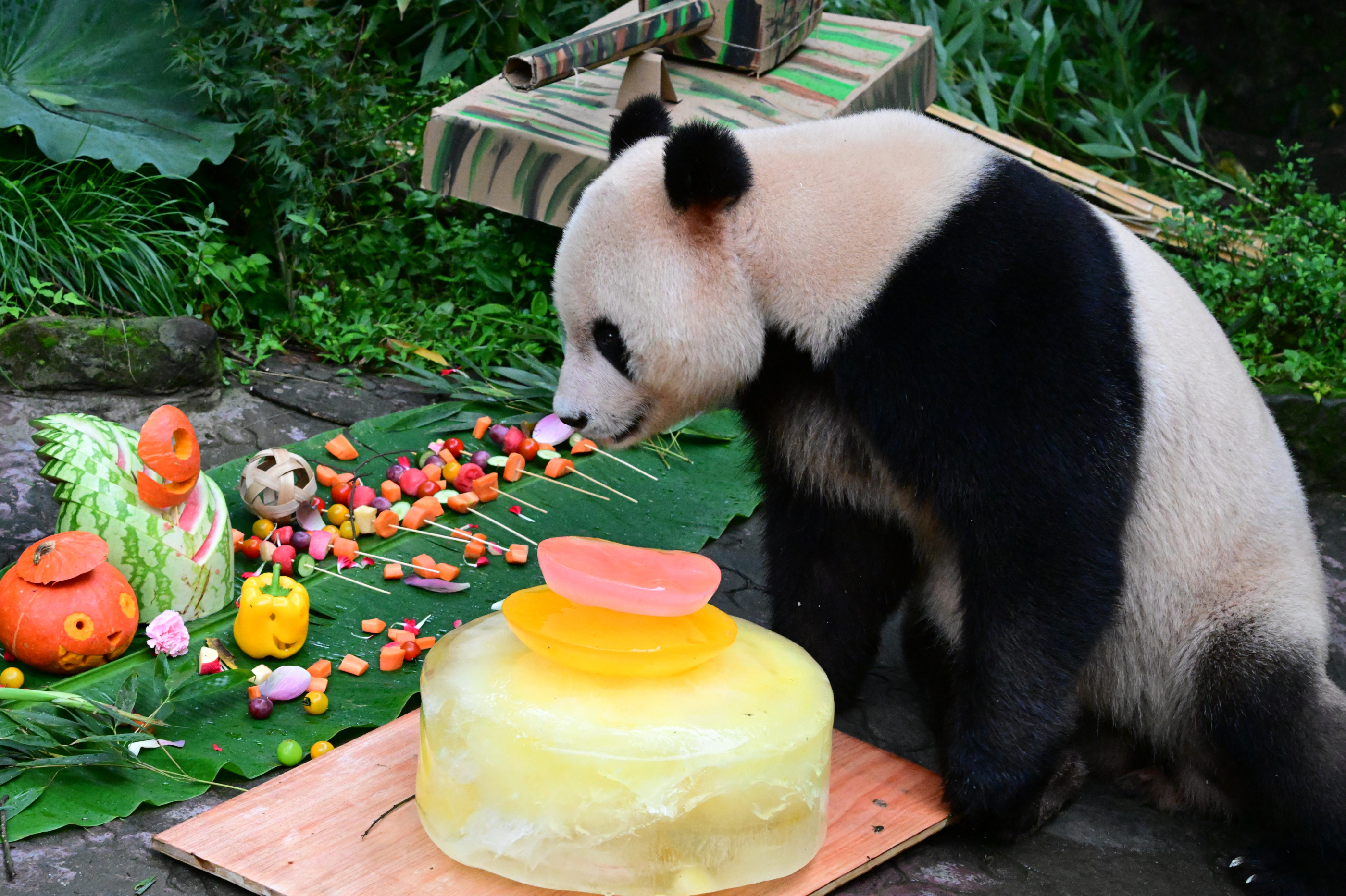 直播鏡頭中,老年大熊貓品嘗着飼養員為它們精心製作的豐容食物,顯得「優雅從容」。值得一提的是,為了特別照顧老年大熊貓的牙口,康養區的飼養員們別出心裁,為大熊貓們製作了香糯軟和的「壽桃」,寄託對老年大熊貓健康長壽的美好祝願。