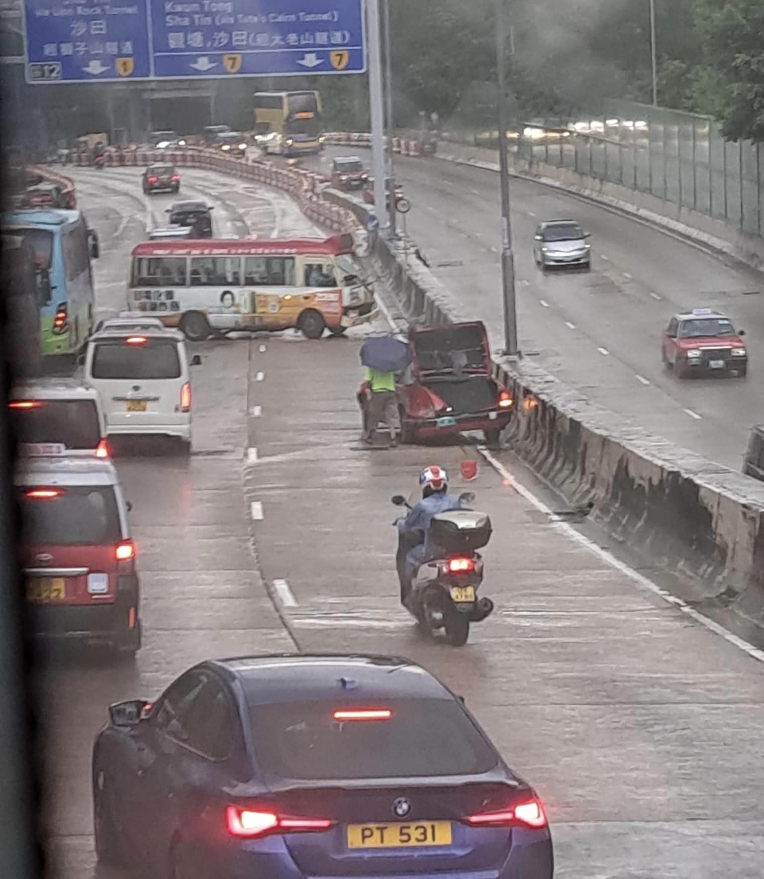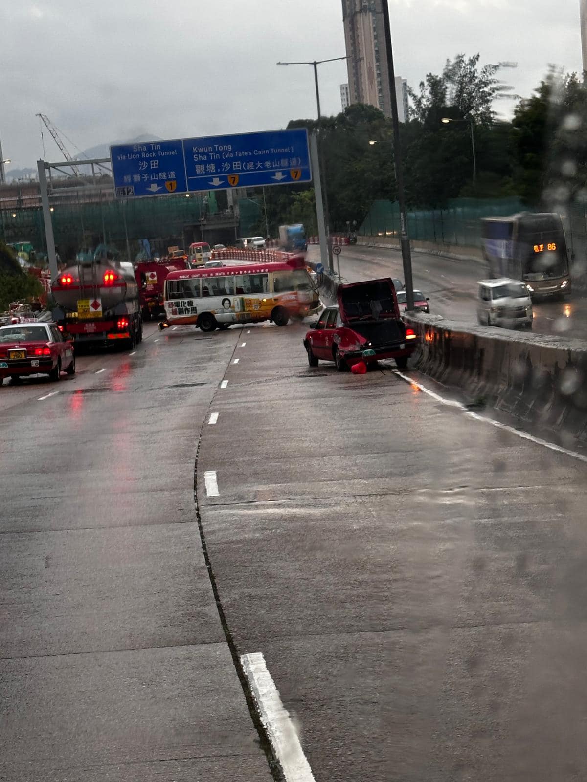 (有片)龍翔道3車相撞釀1傷 往觀塘方向擠塞